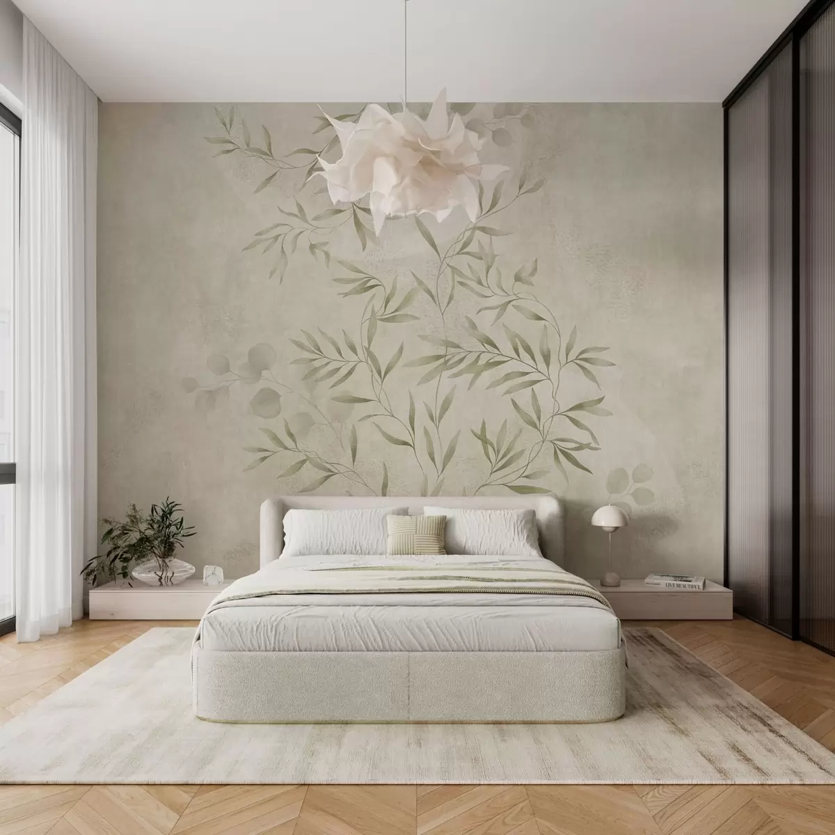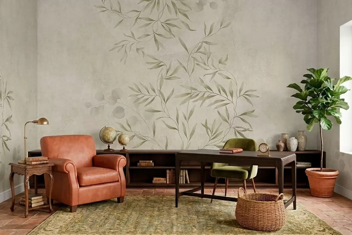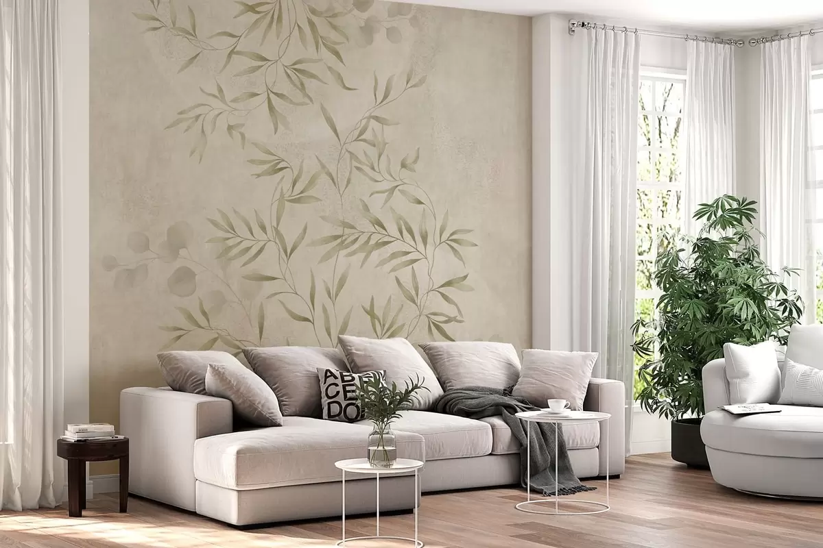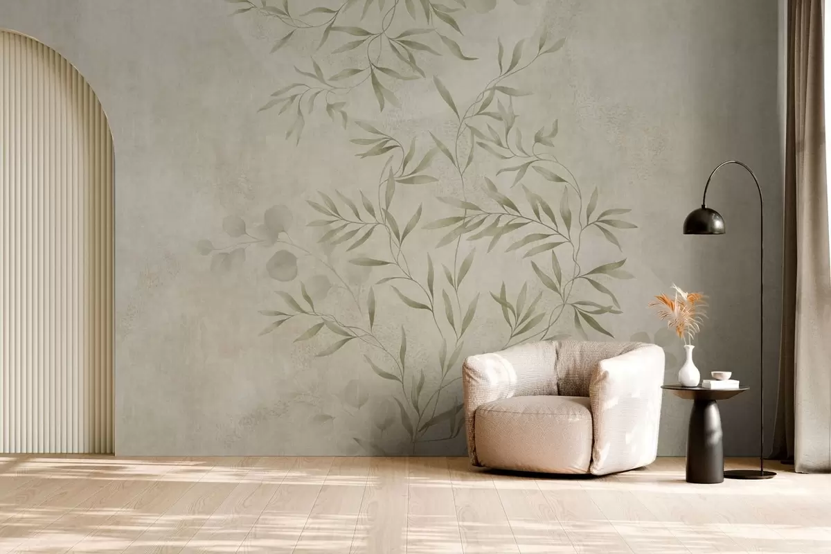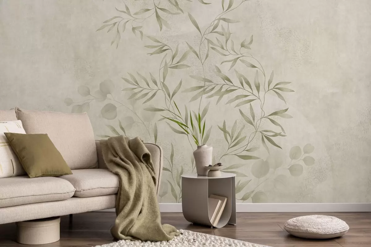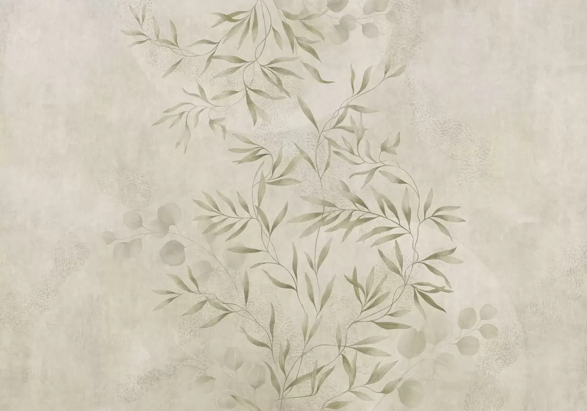 Τοιχογραφίες Βοτανικό μοτίβο σε ανοιχτό πράσινο φόντο με υφή Nr. w05424v1