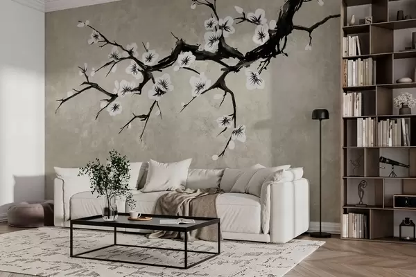 Τοιχογραφίες Κλαδί με λευκά άνθη σε μινιμαλιστικό στυλ Nr. w05425