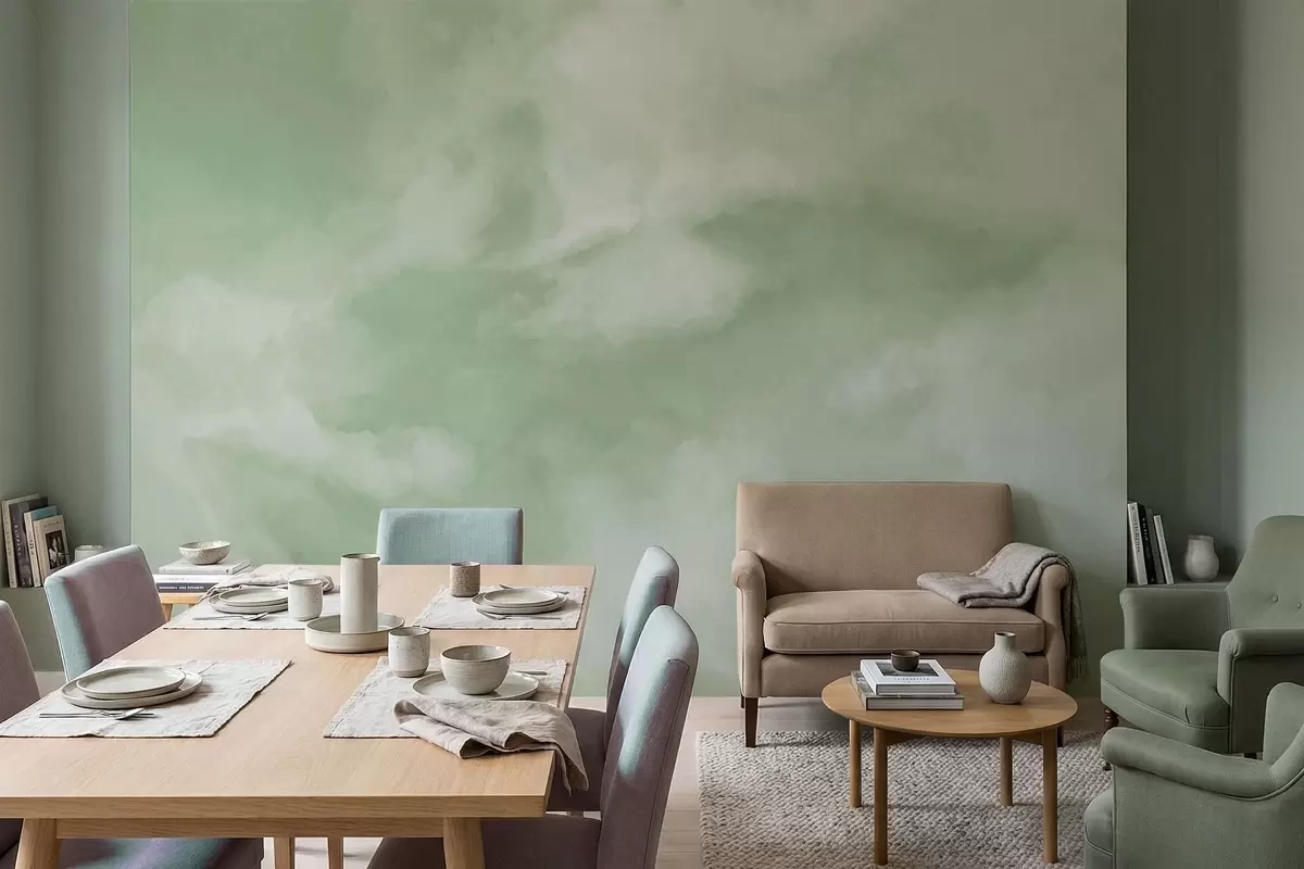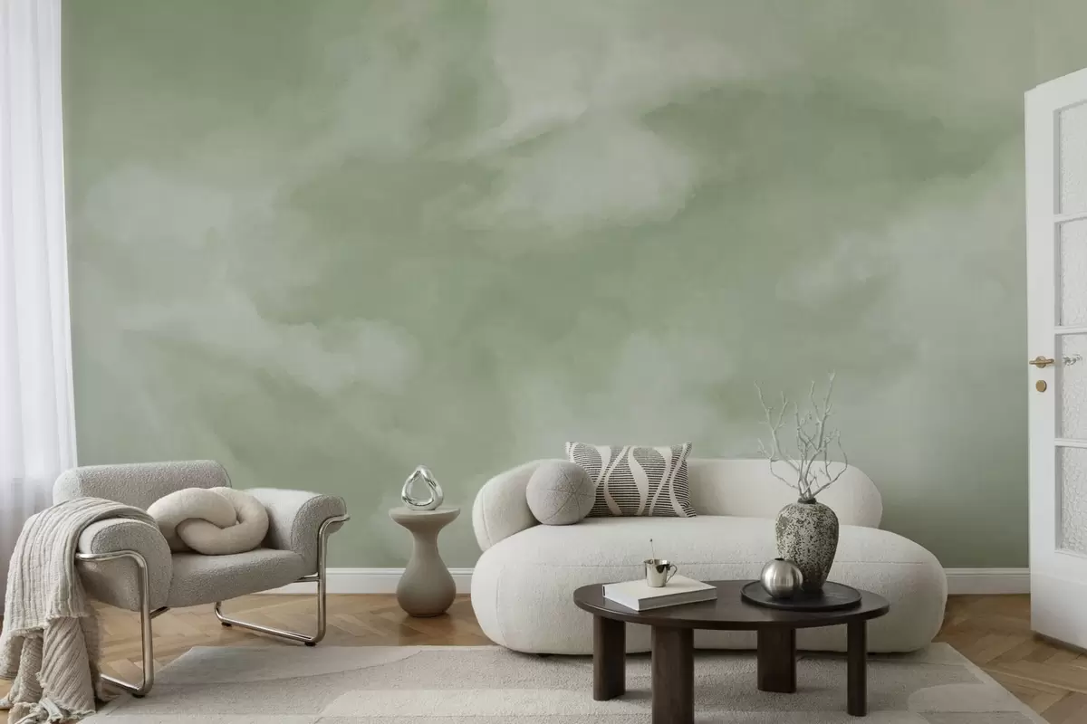 Τοιχογραφίες Απαλό, νεφελώδες φόντο σε απαλές πράσινες αποχρώσεις Nr. w05426v2