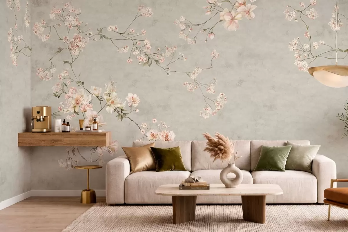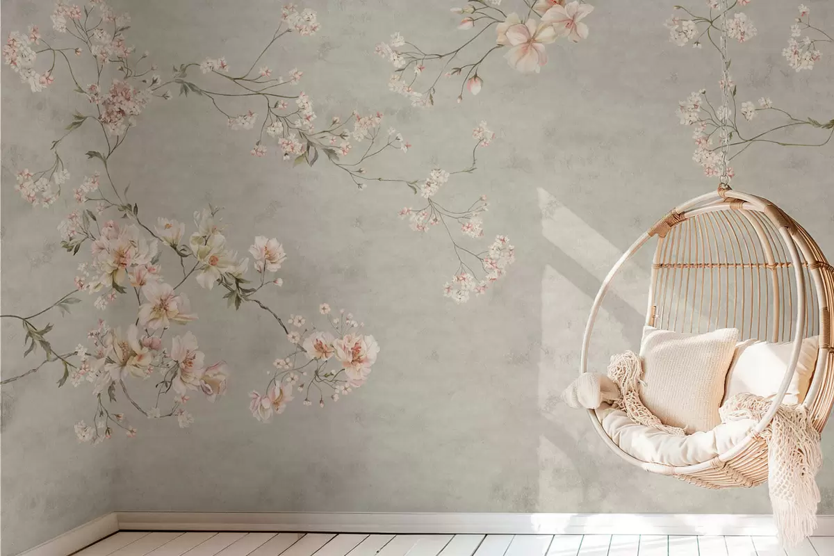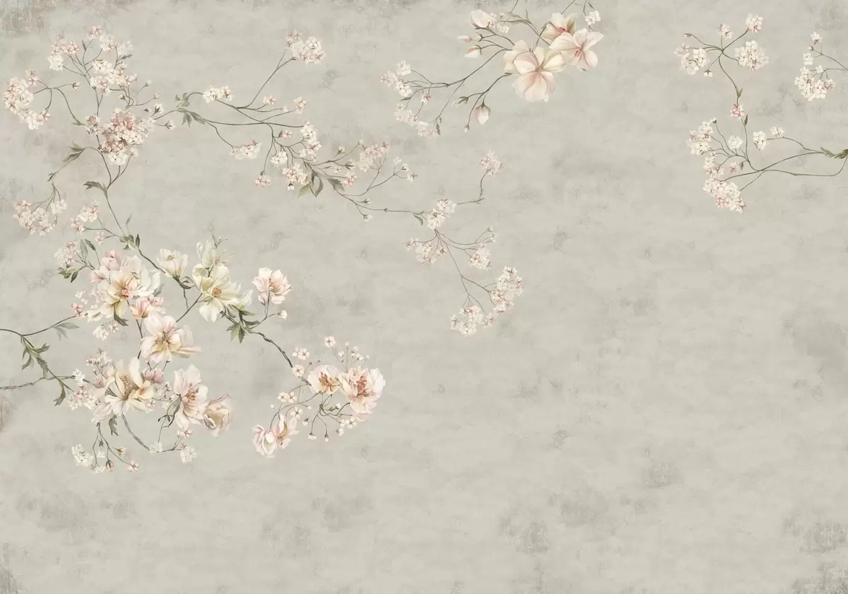 Τοιχογραφίες Λουλούδια σε στυλ σινουαζέρι σε γκρι φόντο Nr. w05427v1