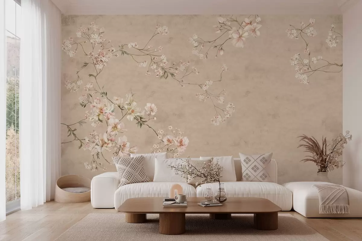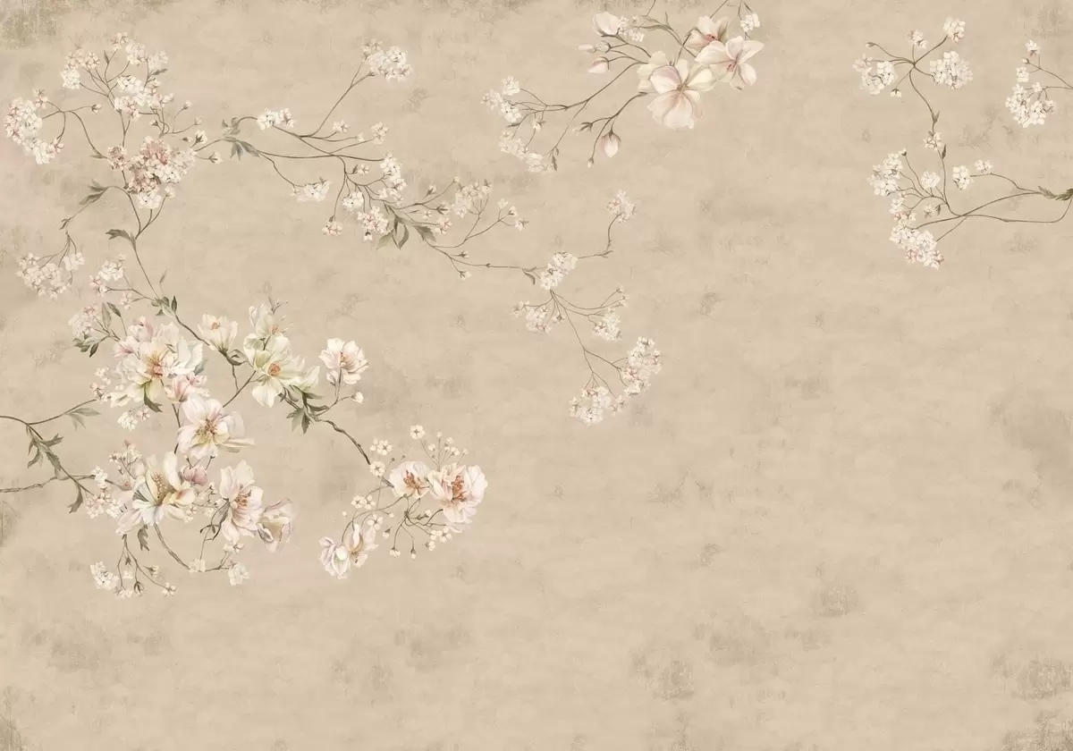 Τοιχογραφίες Λουλούδια σε στυλ σινουαζέ πάνω σε ζεστό μπεζ φόντο Nr. w05427v2