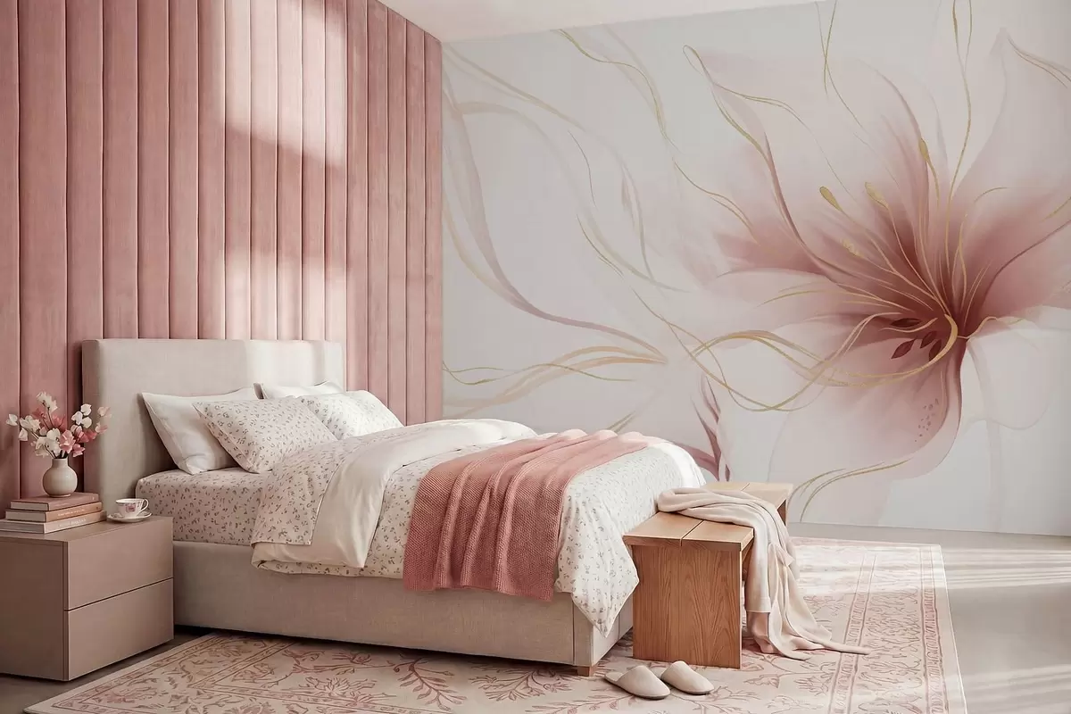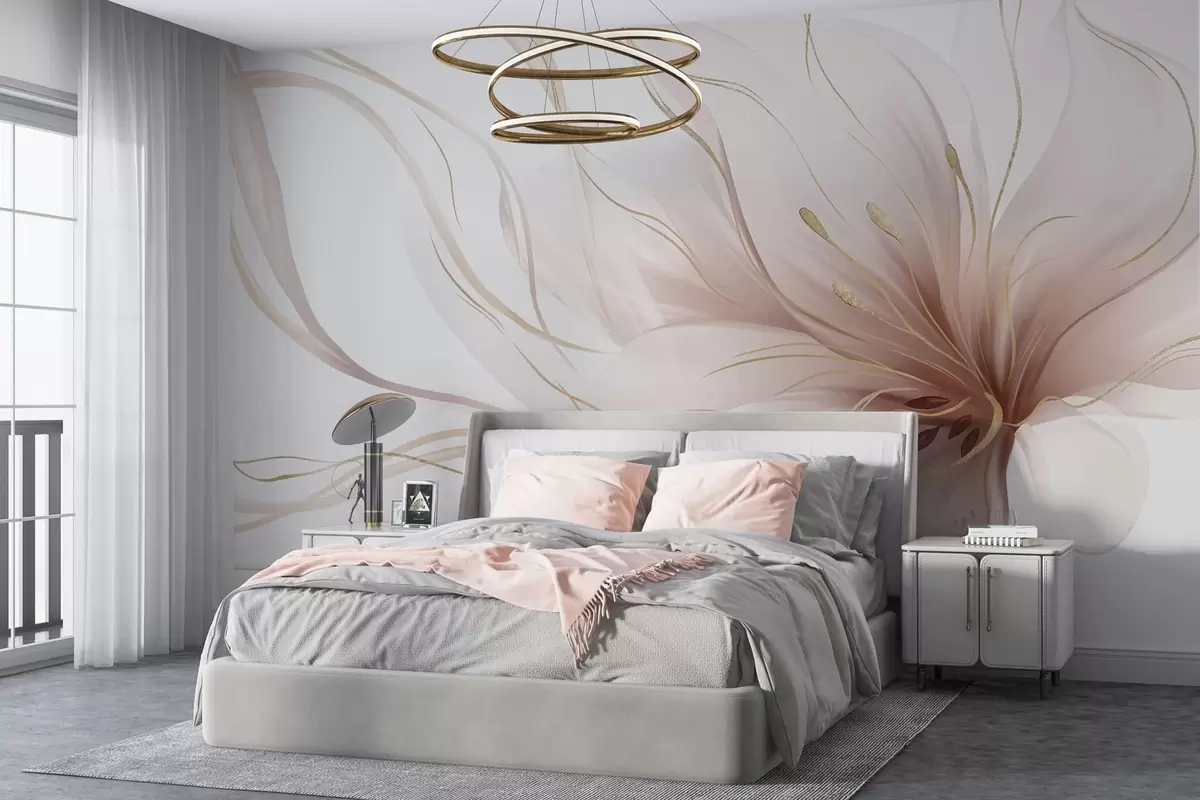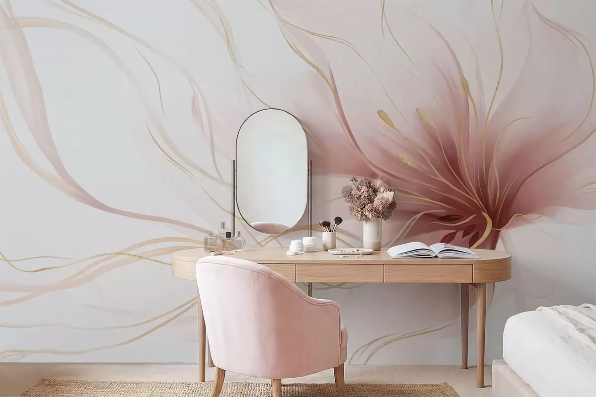 Τοιχογραφίες Ένα αφηρημένο ροζ λουλούδι με κυματιστές γραμμές σε στυλ Fluid Art Nr. w05428v1