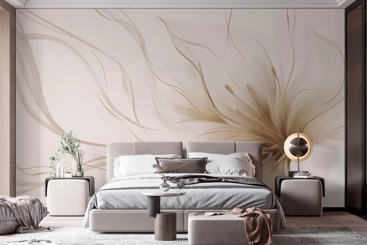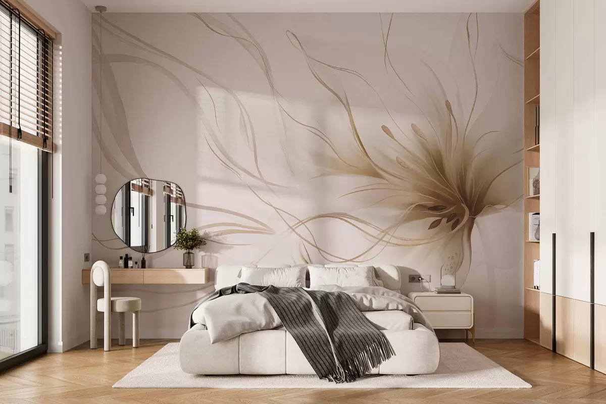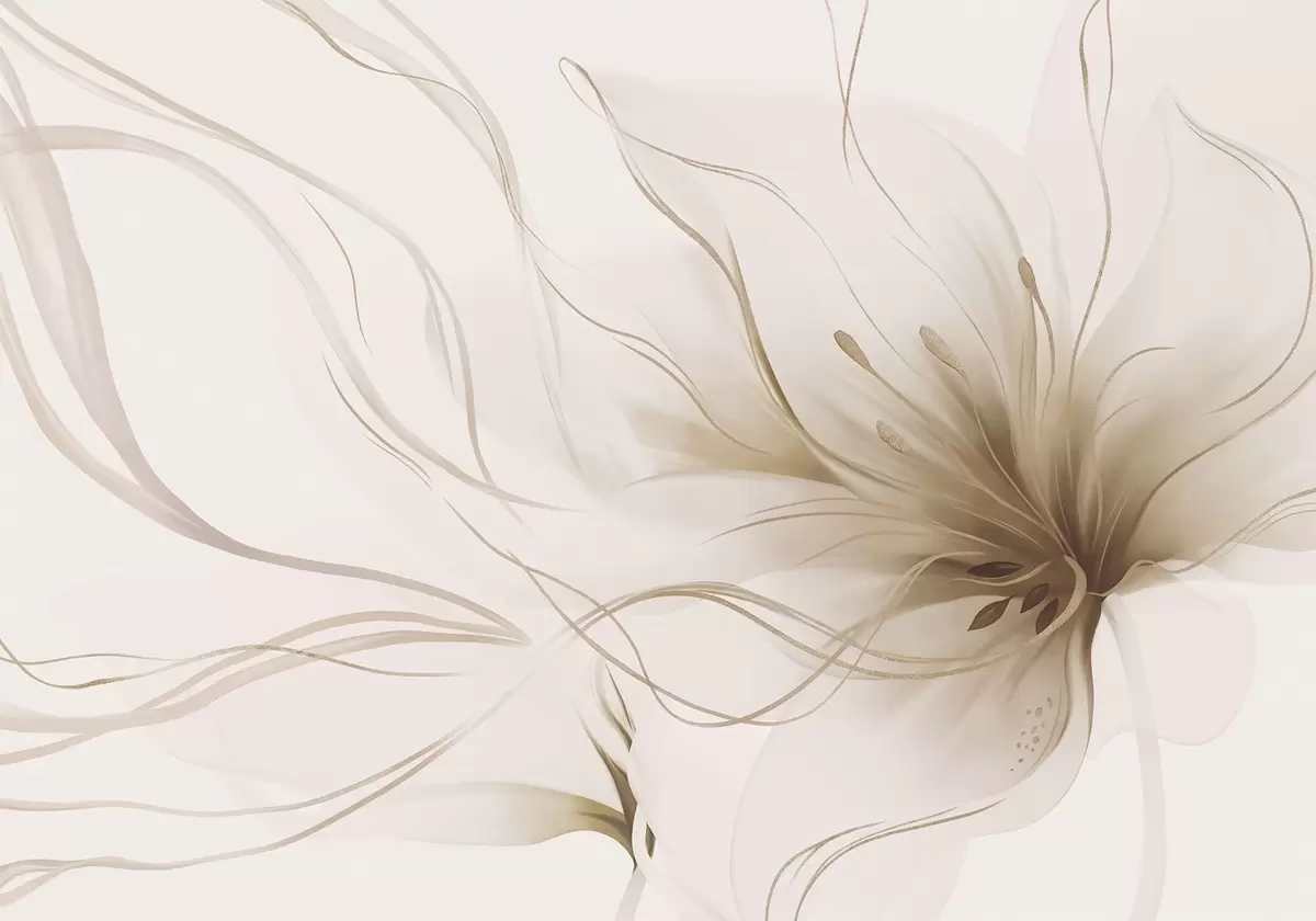 Τοιχογραφίες Ένα αφηρημένο μπεζ λουλούδι με κυματιστές γραμμές σε στυλ Fluid Art Nr. w05428v2