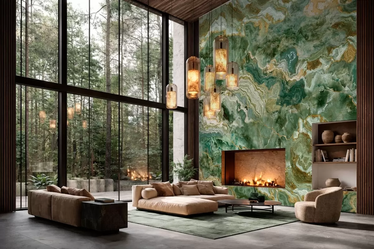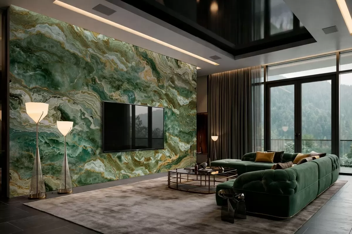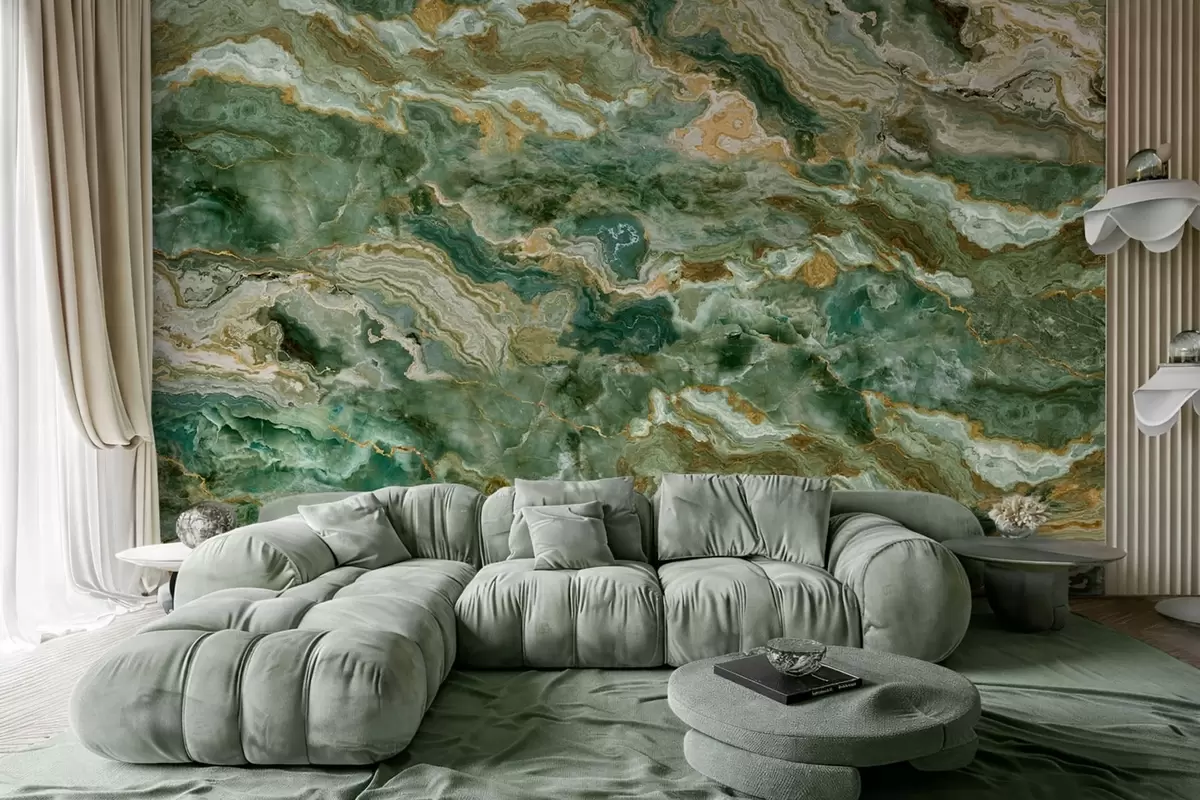 Τοιχογραφίες Υφή πράσινου όνυχα με κυματιστές, στρωματοποιημένες φλέβες Nr. w05429