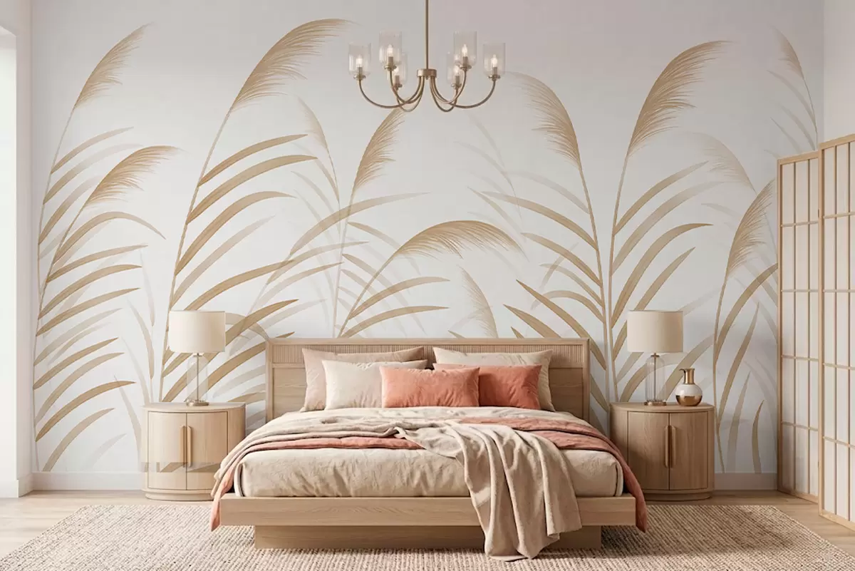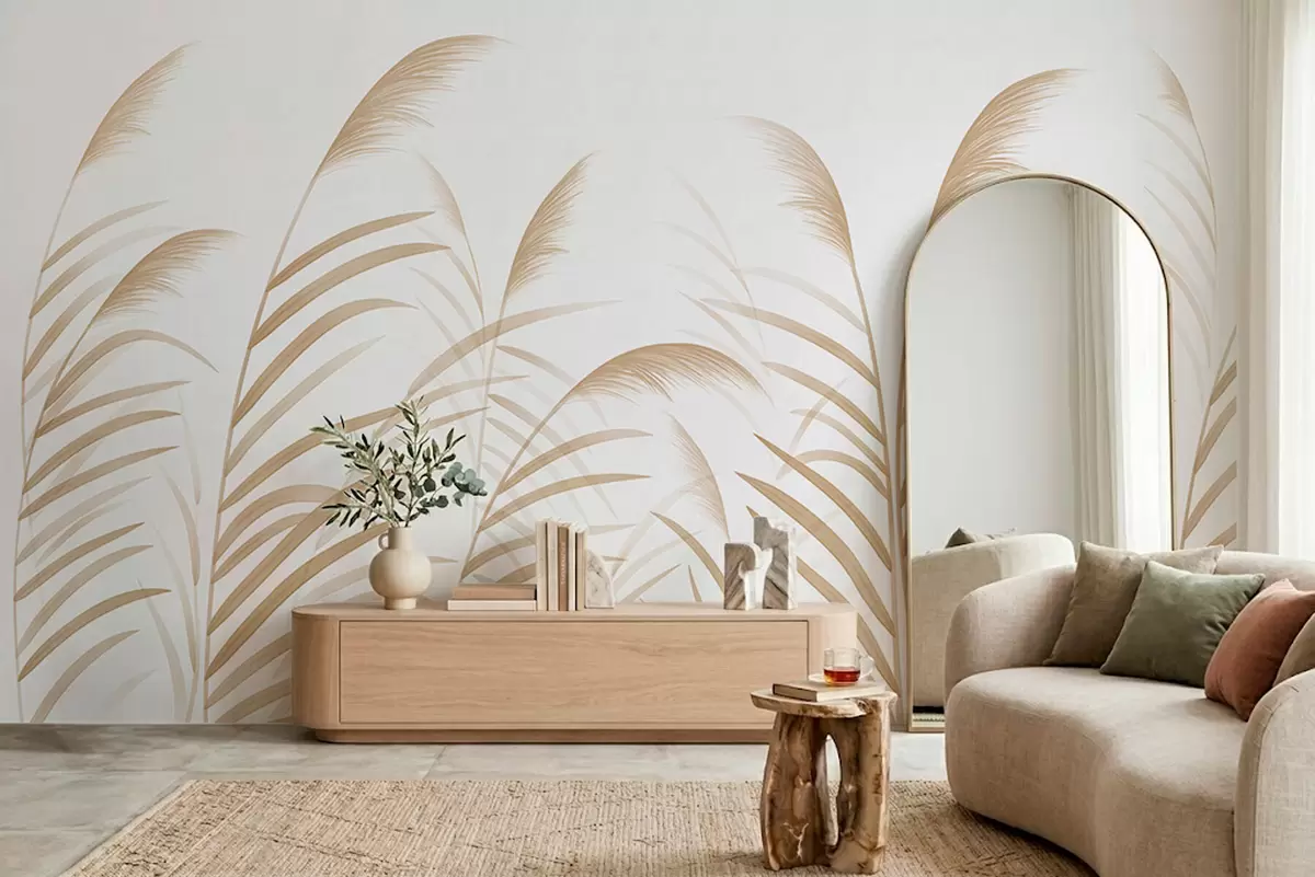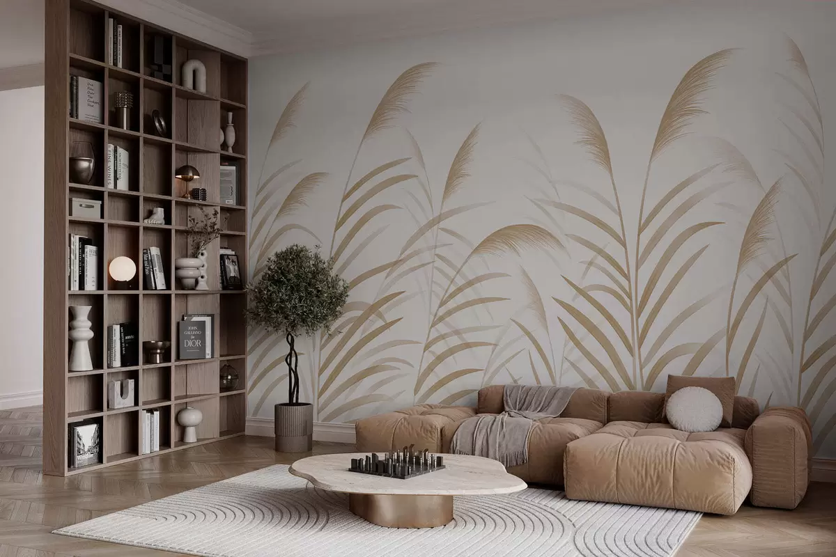 Τοιχογραφίες Χόρτα σε απαλές μπεζ αποχρώσεις Nr. w05432v1