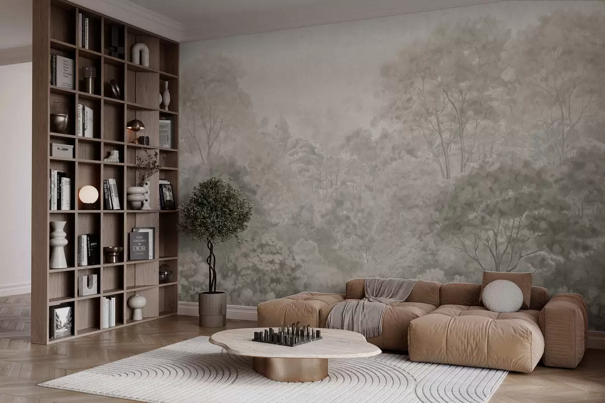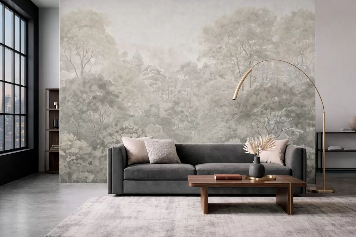 Τοιχογραφίες Ρετρό τοπίο με ανοιχτόχρωμο δάσος σε παστέλ αποχρώσεις Nr. w05433v2