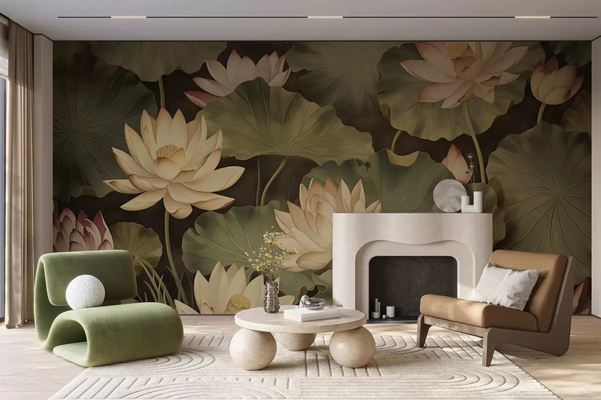 Τοιχογραφίες Ανθισμένοι λωτοί σε ρετρό στυλ Nr. w05445