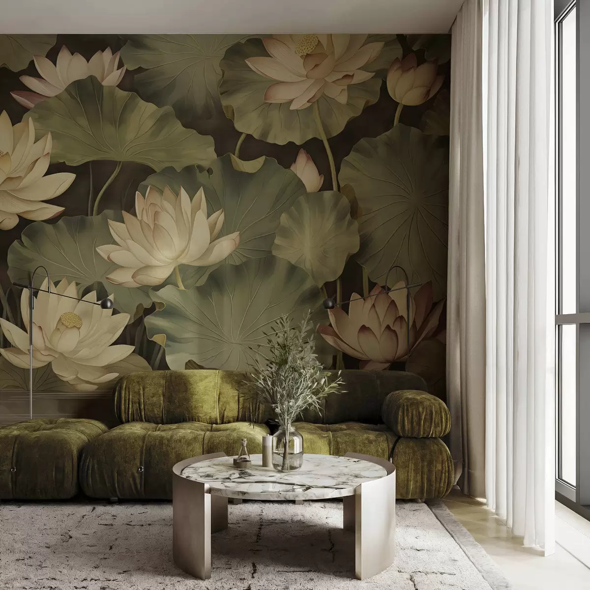 Τοιχογραφίες Ανθισμένοι λωτοί σε ρετρό στυλ Nr. w05445