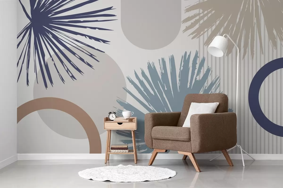 Τοιχογραφίες Αφηρημένη απεικόνιση με φυτικές και γεωμετρικές σιλουέτες Nr. w05505v1