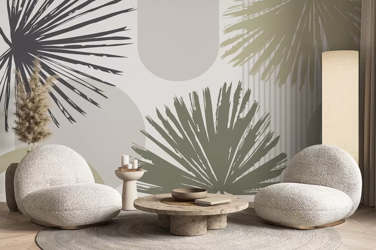 Τοιχογραφίες Αφηρημένη απεικόνιση με φυτικές και γεωμετρικές σιλουέτες Nr. w05505v2