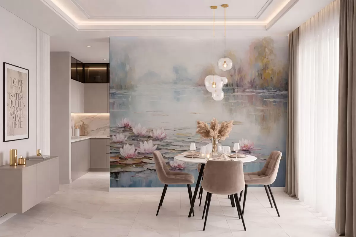 Τοιχογραφίες Ιμπρεσιονιστική λίμνη με νούφαρα και απαλό φως Nr. w05515
