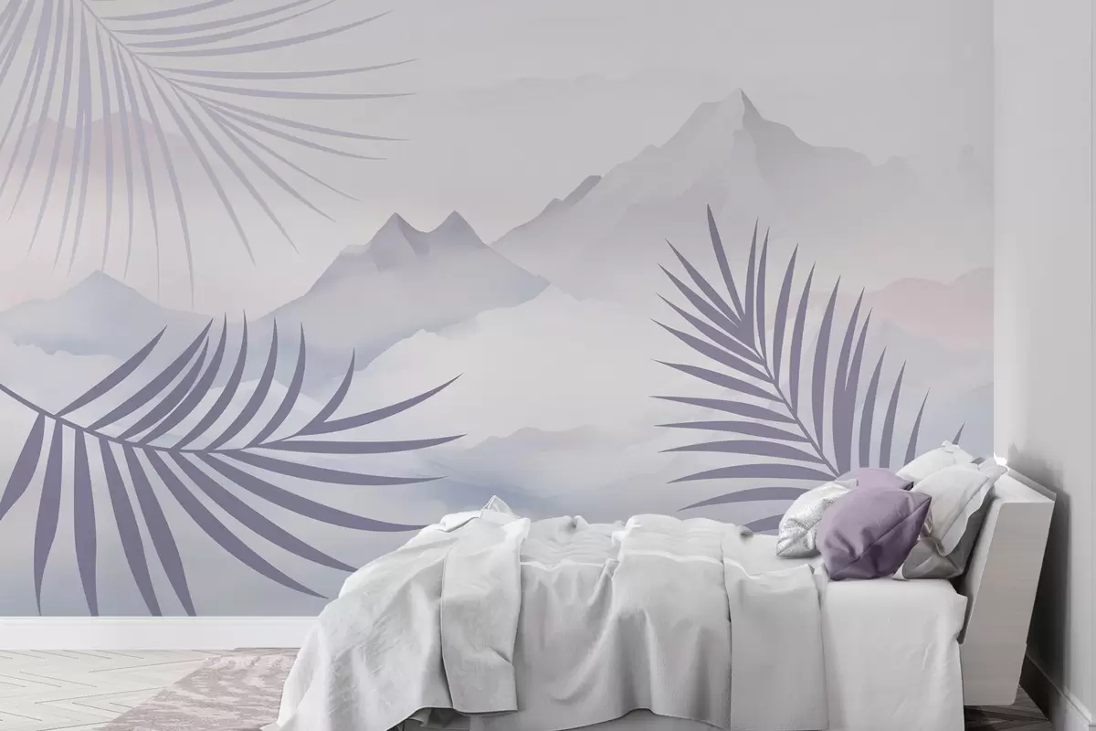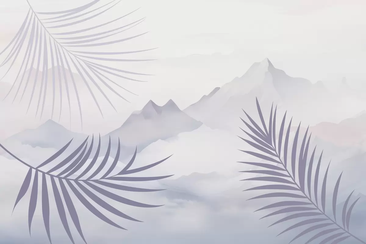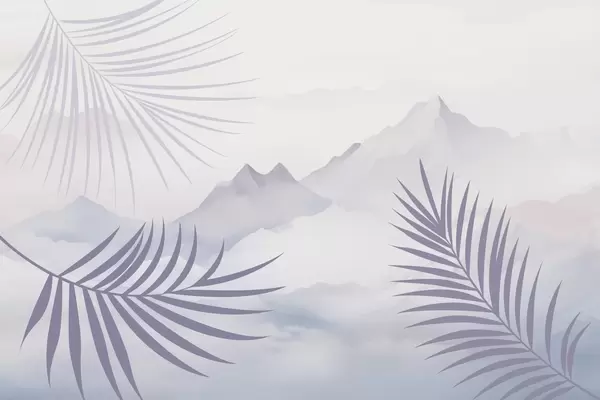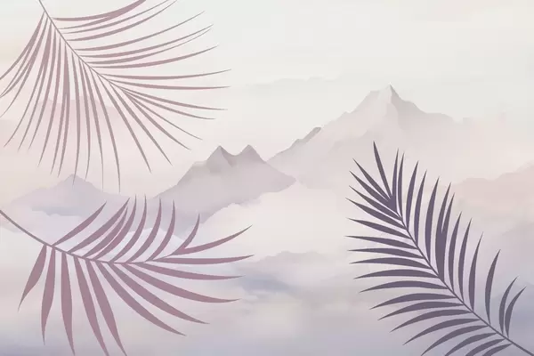 Τοιχογραφίες Φύλλα φοίνικα με φόντο τα βουνά Nr. w05548