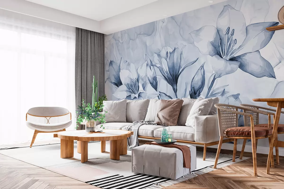 Τοιχογραφίες Μπλε λουλούδια σε μπλε φόντο Nr. w07897
