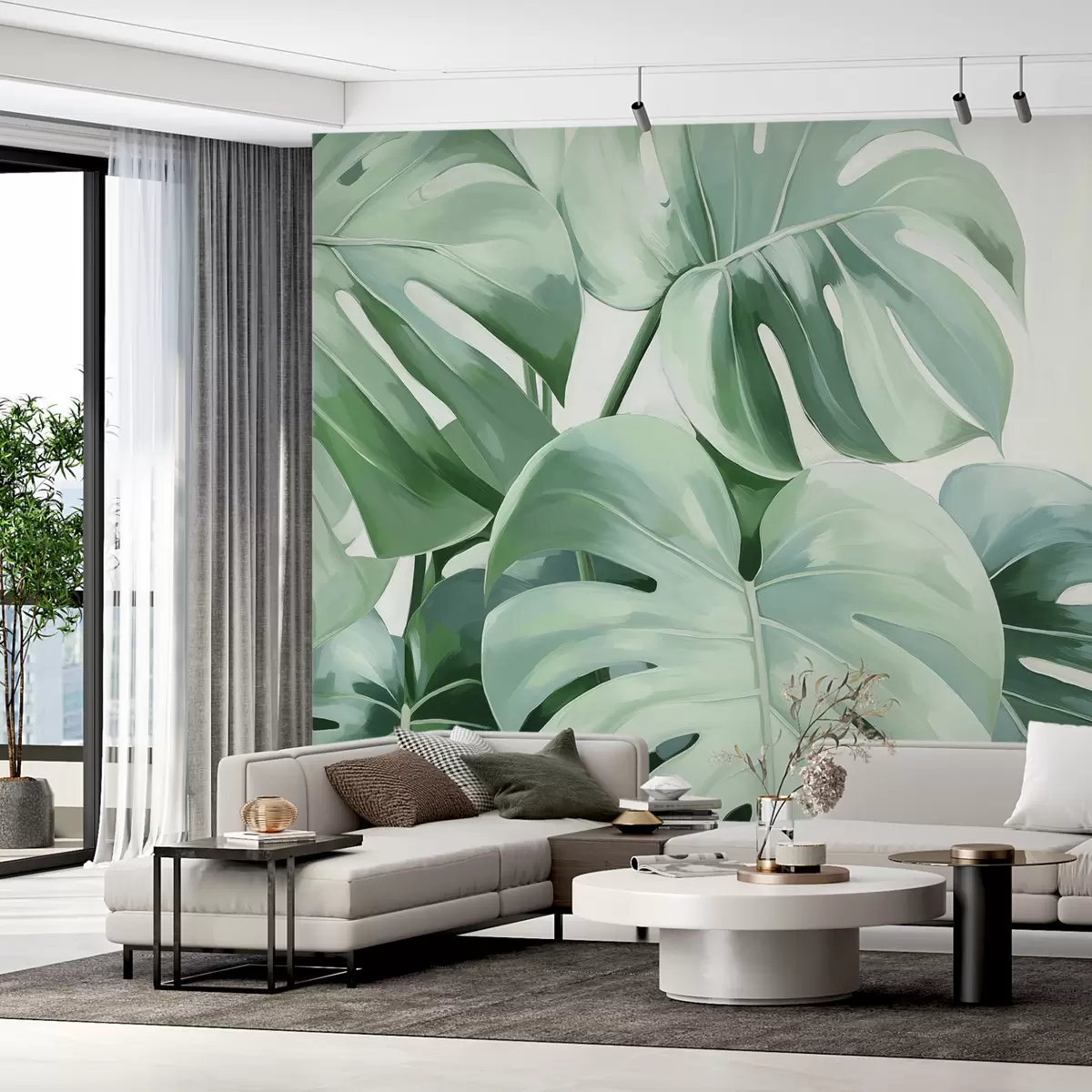Τοιχογραφίες Πράσινα μεγάλα φύλλα τροπικού τέρας Nr. w08116