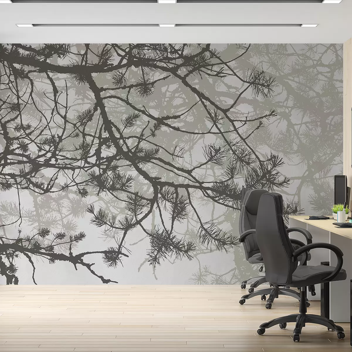 Τοιχογραφίες κλαδιά ενός μεγάλου δέντρου σε γκρι τόνους Nr. w08166