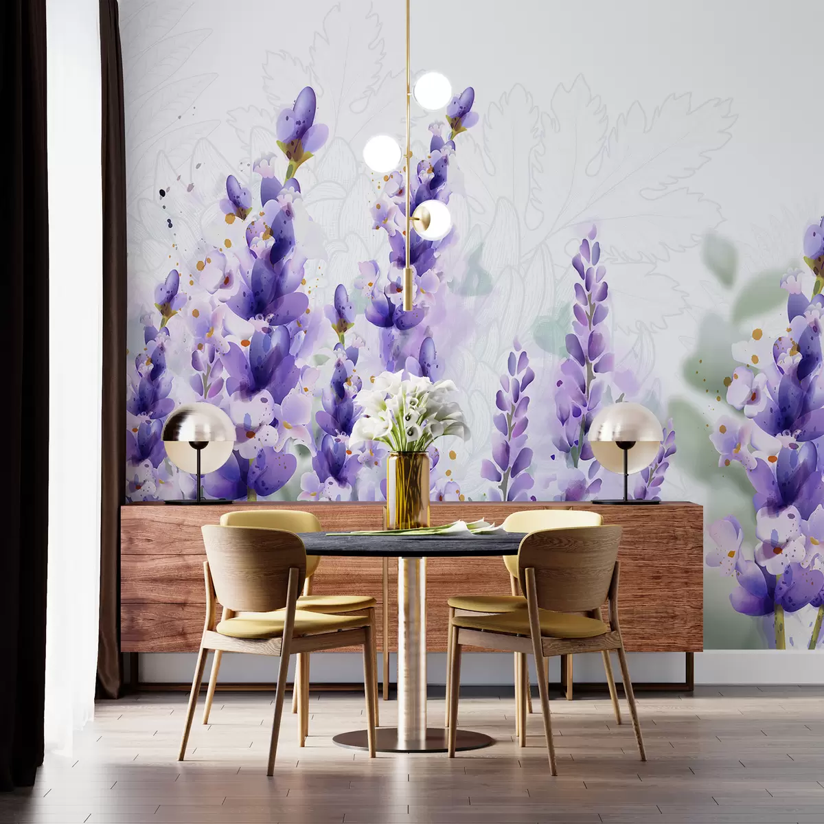 Τοιχογραφίες Μωβ λουλούδια λεβάντας σε ένα χωράφι, με απαλή εστίαση και θολό φόντο Nr. w08231