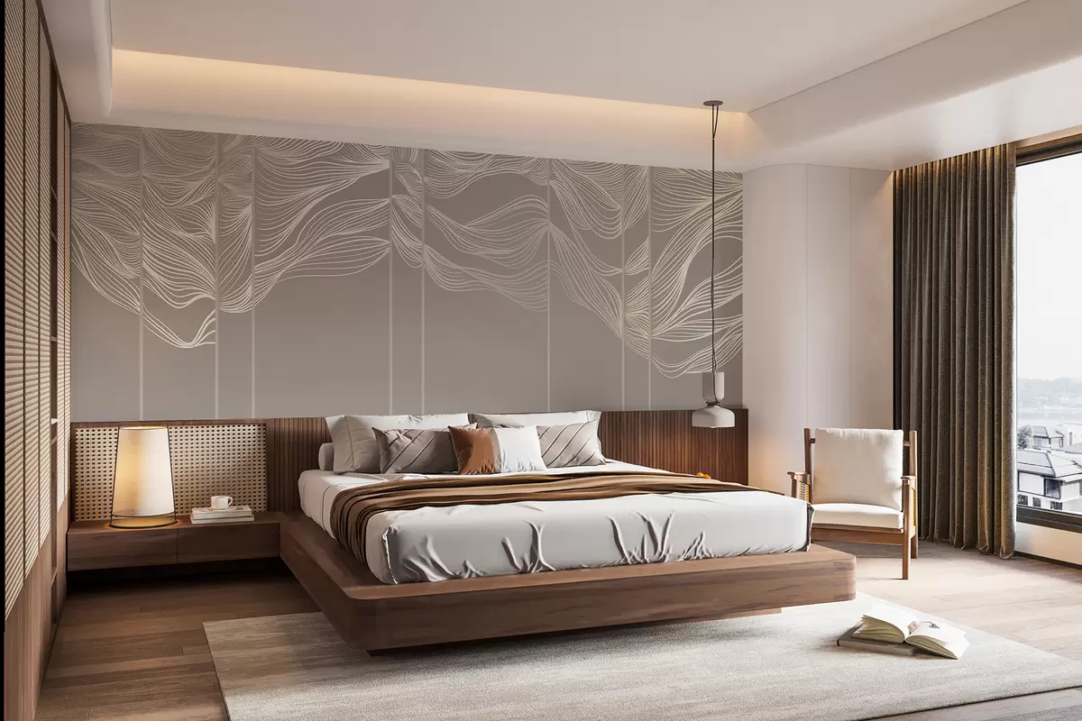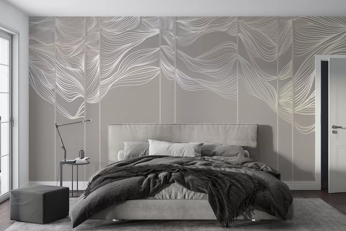 Τοιχογραφίες Ρευστά λευκά αφηρημένα κύματα γραμμής σε ανοιχτό καφέ φόντο Nr. w08263