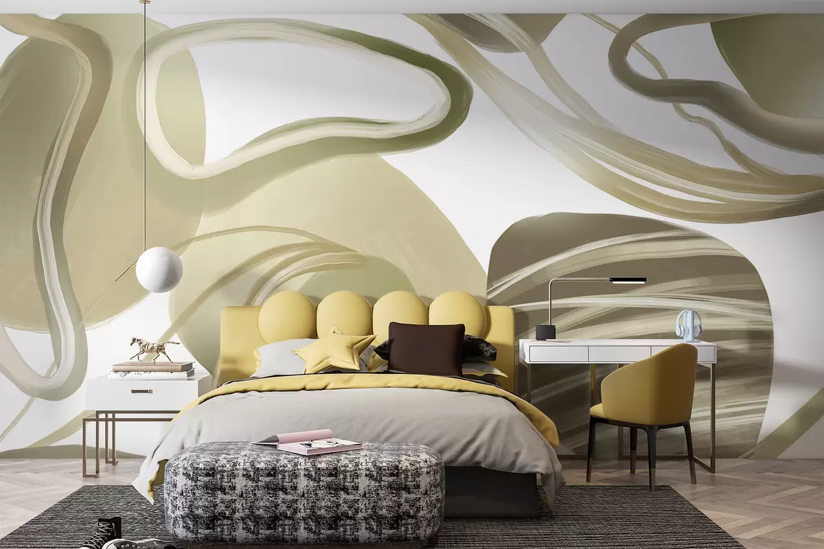 Τοιχογραφίες Αφηρημένα στροβιλιζόμενα σχήματα και καμπύλες σε αποχρώσεις του μπεζ που δημιουργούν μια δυναμική και ρέουσα σύνθεση Nr. w08279