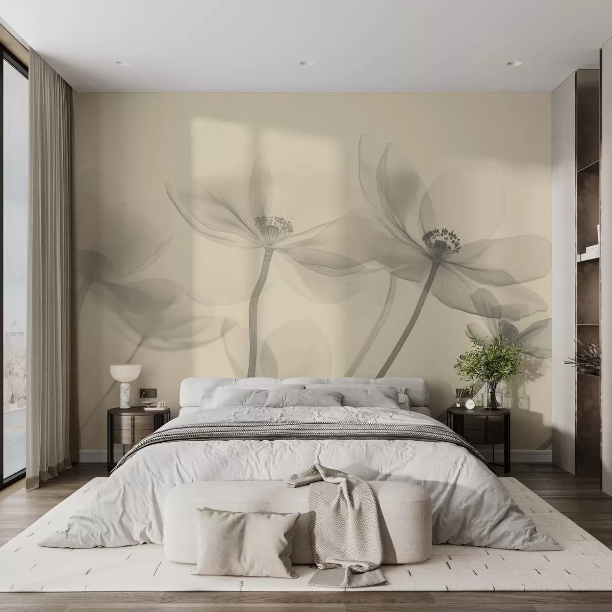 Τοιχογραφίες Αέρινα αγριολούλουδα σε μπεζ απόχρωση Nr. w08490
