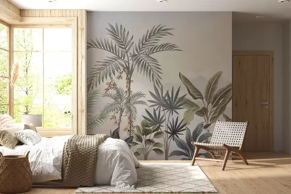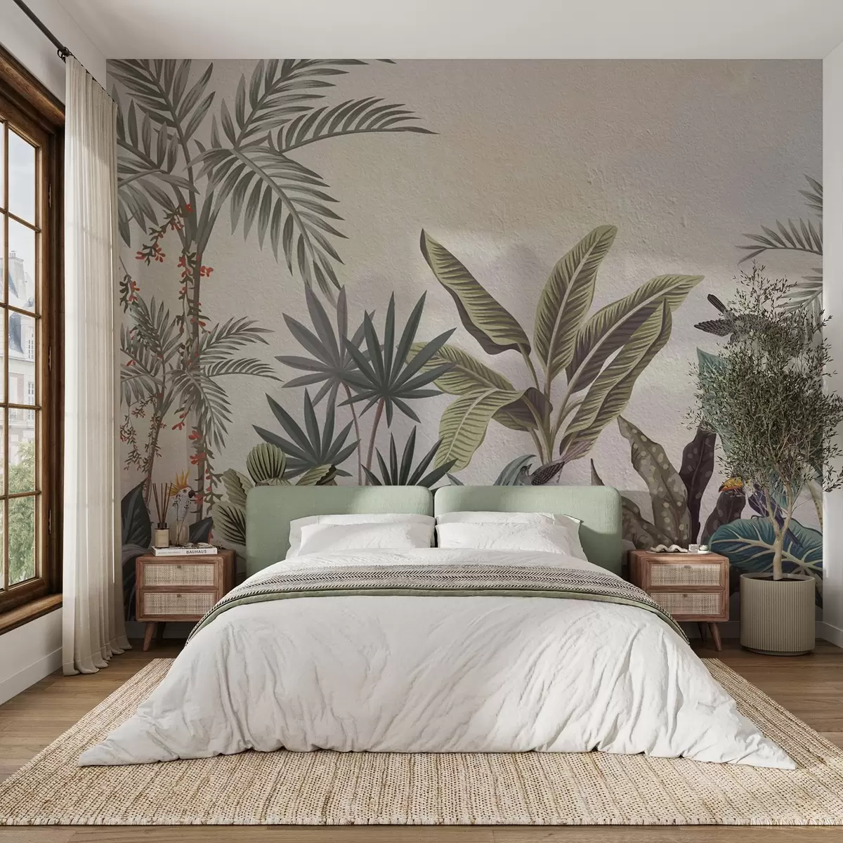 Τοιχογραφίες Τροπική ζούγκλα με φοίνικες και πολύχρωμα πουλιά Nr. w08496