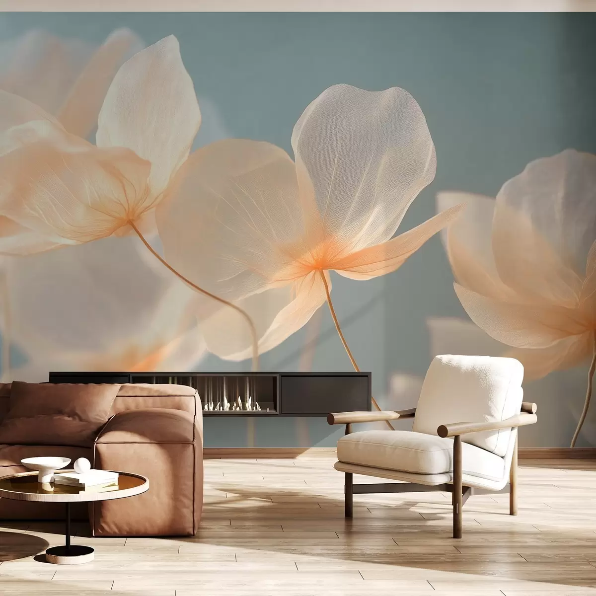 Τοιχογραφίες Πέταλα λωτού, μια λεπτή σύνθεση με μπλε φόντο Nr. w08500