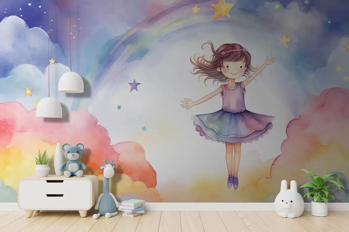 Τοιχογραφίες Χαριτωμένο κορίτσι στα σύννεφα Nr. w08504