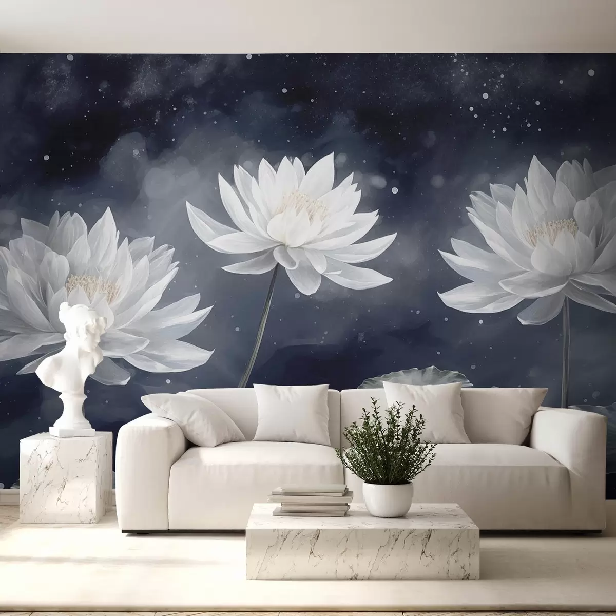 Τοιχογραφίες Τρία λουλούδια λωτού σε σκούρο φόντο Nr. w08506