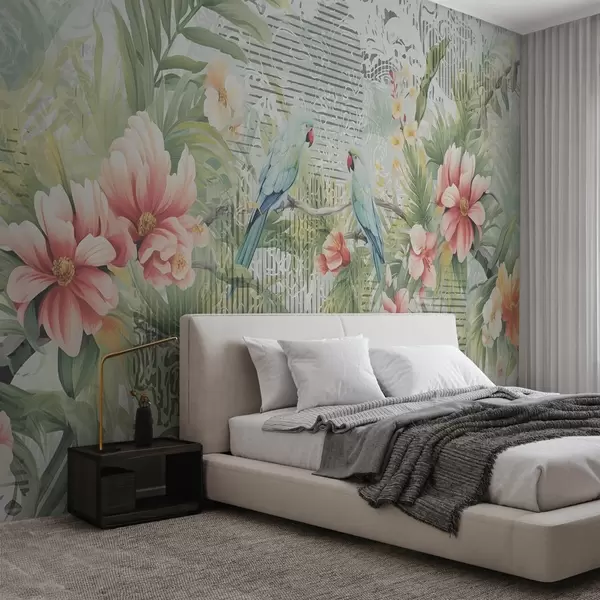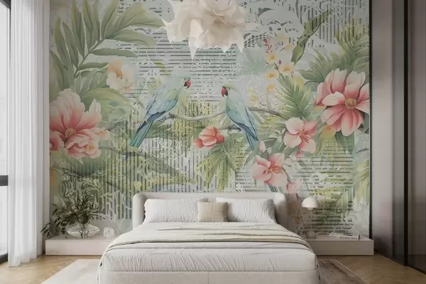 Τοιχογραφίες Παπαγάλοι σε τροπικούς θάμνους Nr. w08508