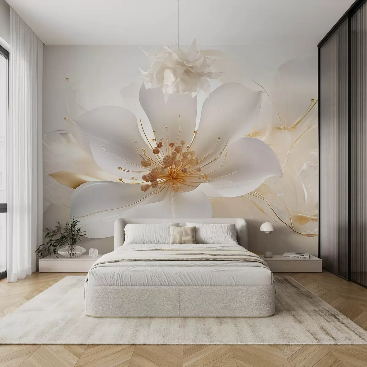 Τοιχογραφίες Μεγάλο λευκό λουλούδι σε αφηρημένο φόντο Nr. w08510