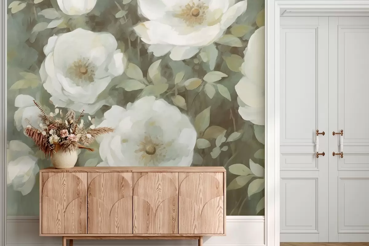 Τοιχογραφίες Μεγάλα λευκά λουλούδια Nr. w08549v1