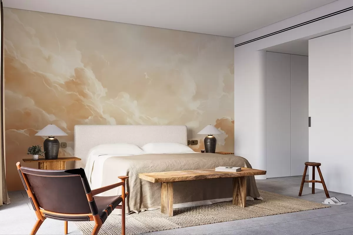 Τοιχογραφίες Μπεζ ουρανός με σύννεφα σε γραφικό στυλ Nr. w08550