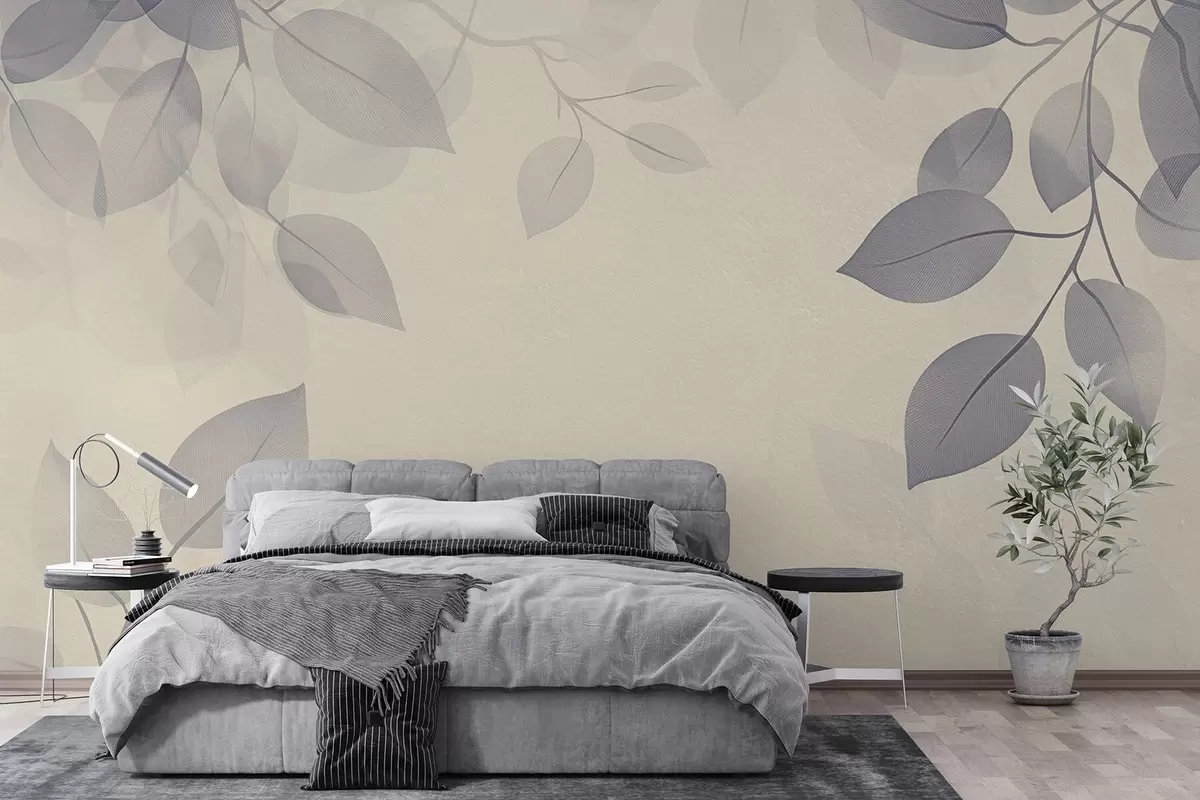 Τοιχογραφίες Κρεμαστά κλαδιά με φύλλα σε μπλε τόνους Nr. w08551