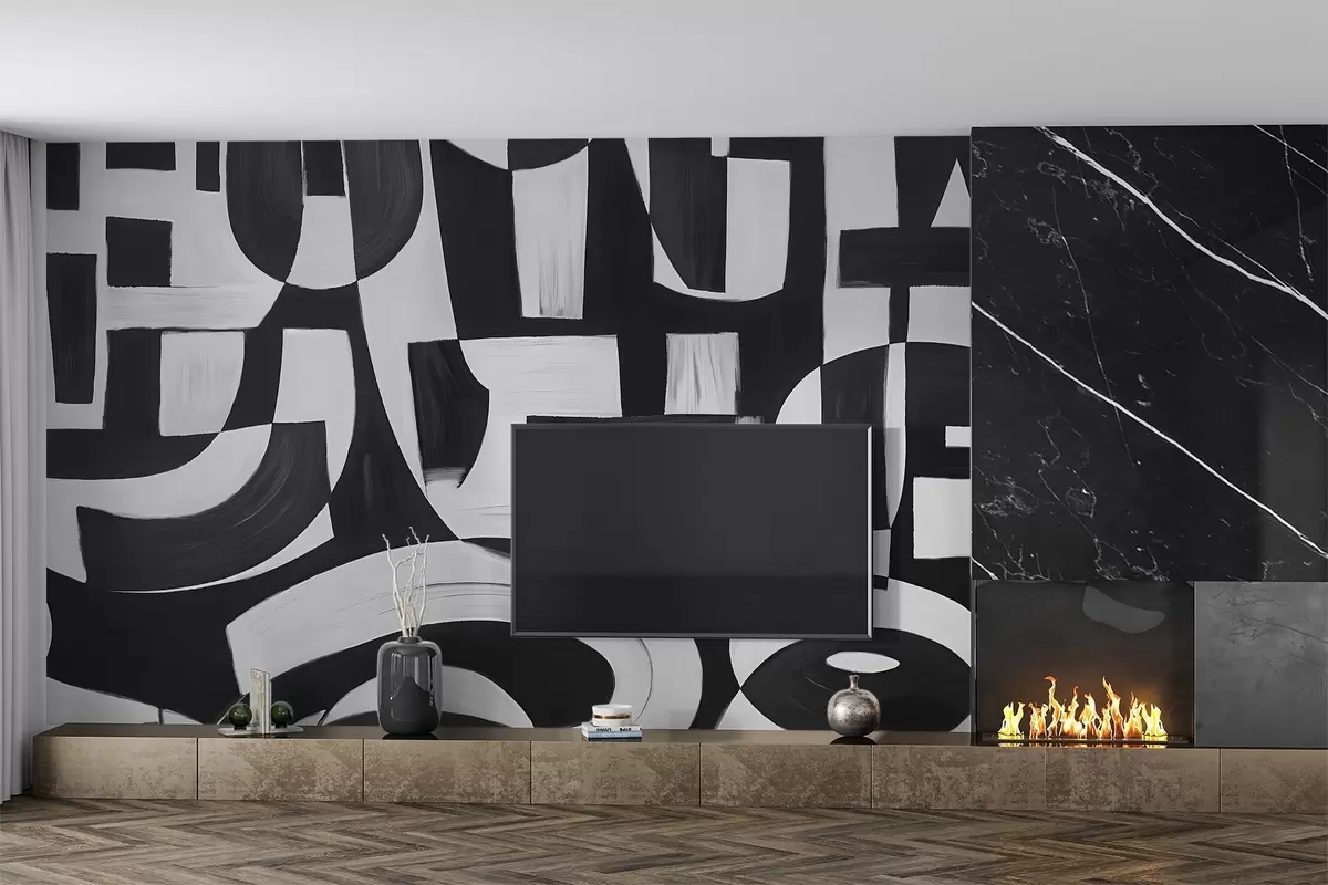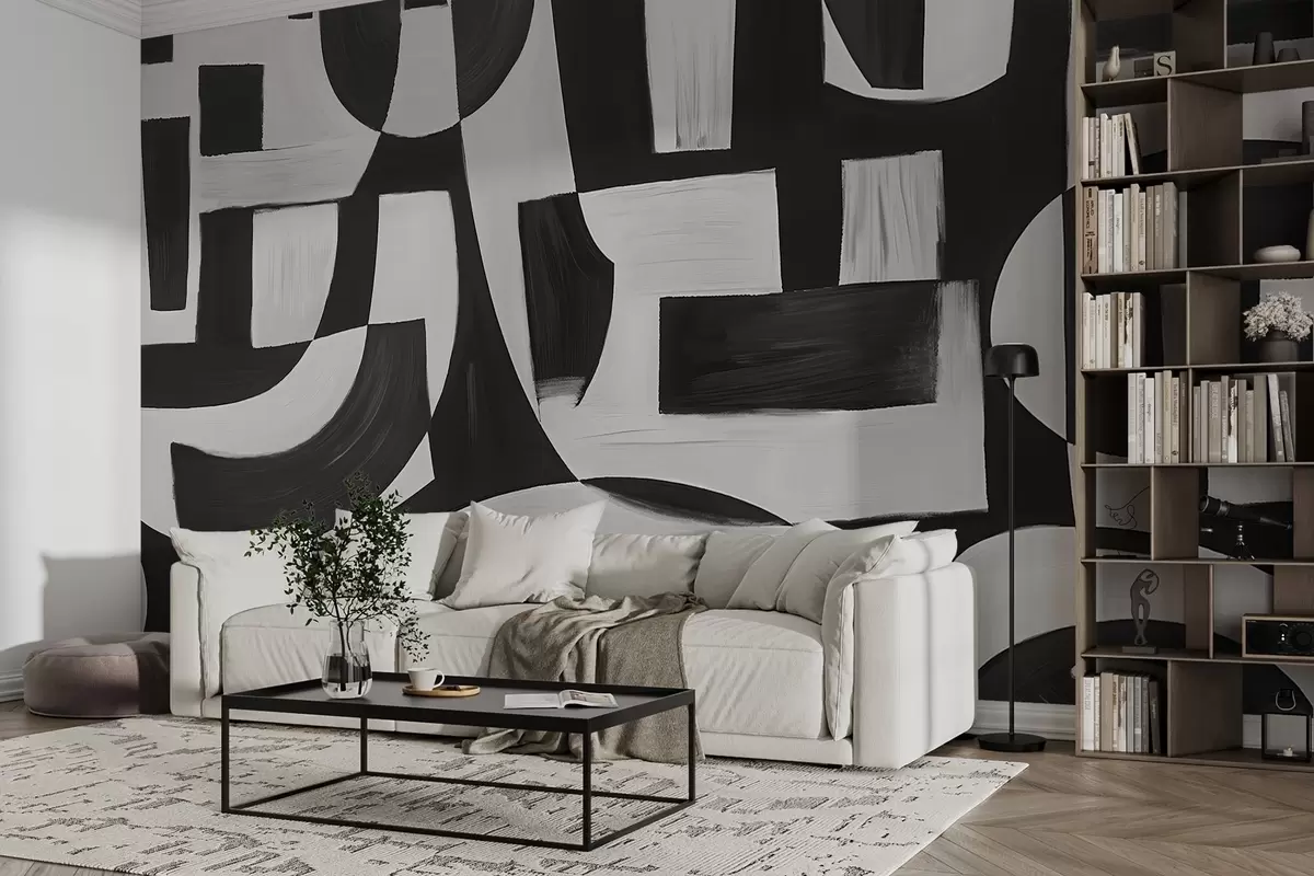 Τοιχογραφίες Αφηρημένα ασπρόμαυρα γεωμετρικά σχήματα και μοτίβα, δημιουργώντας μια οπτικά εντυπωσιακή και δυναμική σύνθεση Nr. w08608