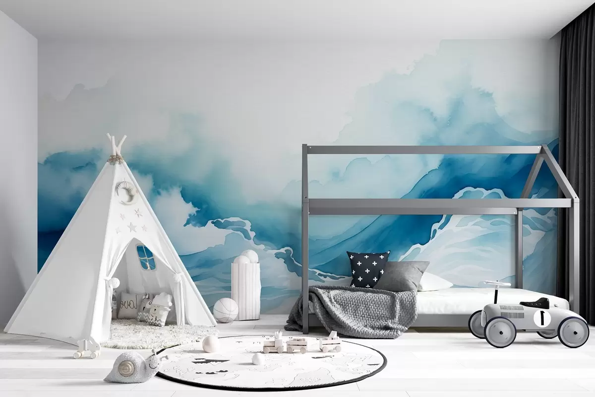 Τοιχογραφίες Κύματα ωκεανού σε στυλ ακουαρέλας σε μπλε τόνους Nr. w08655
