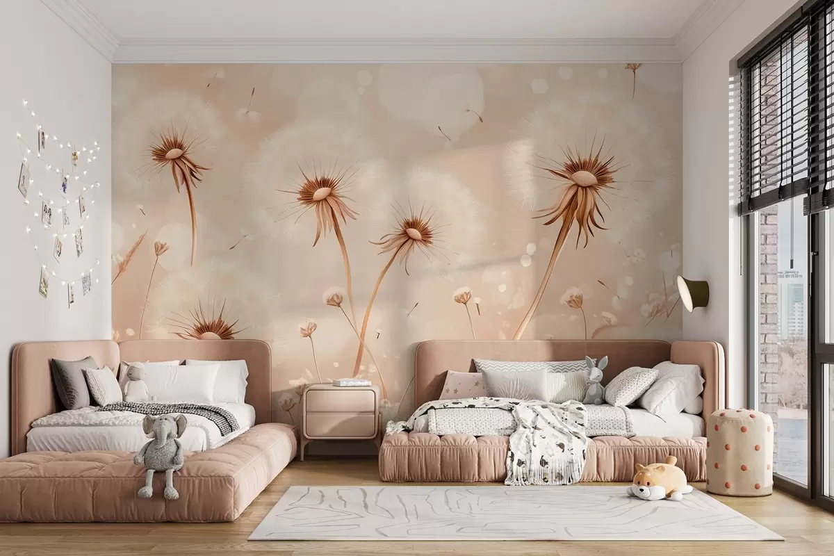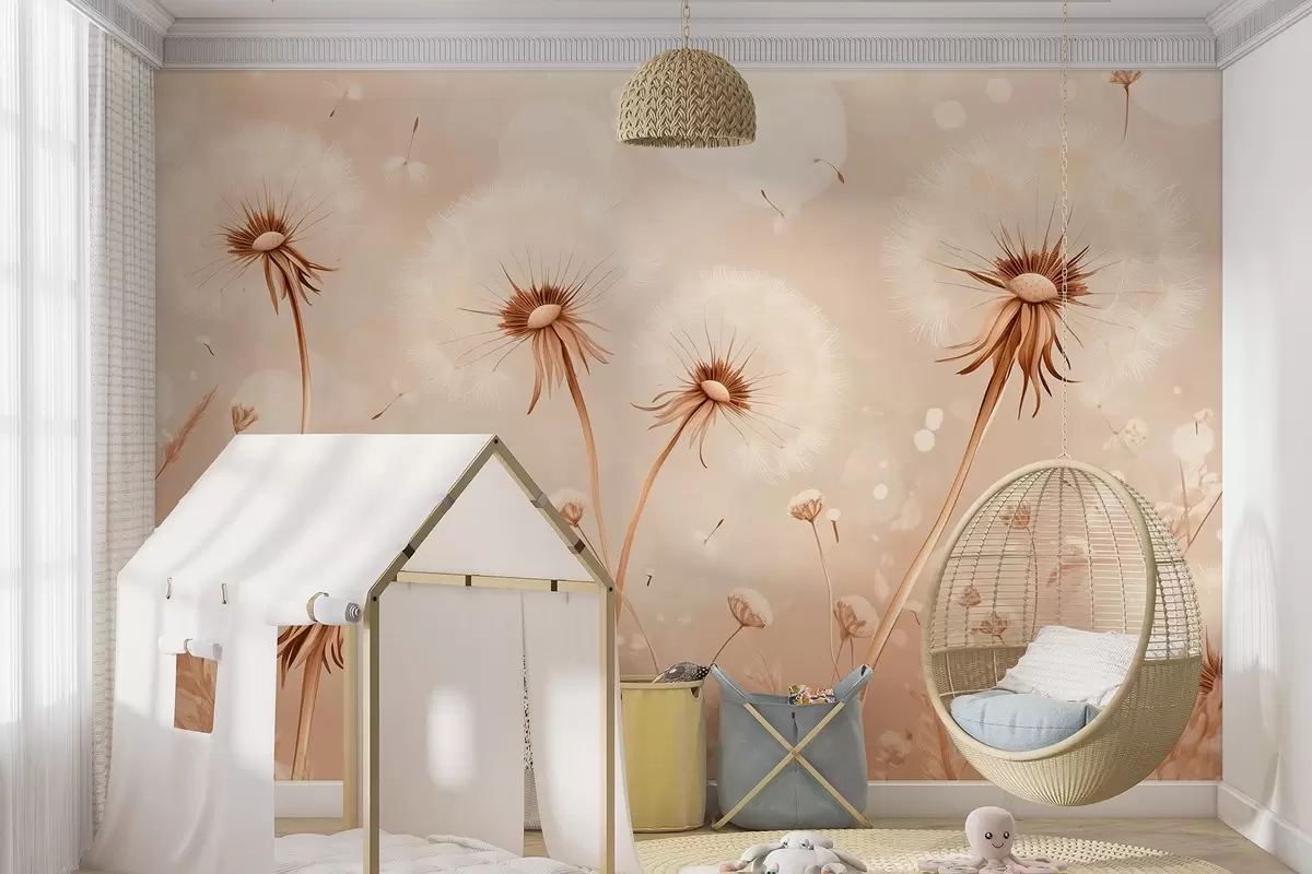 Τοιχογραφίες Κομψές πικραλίδες και αγριολούλουδα σε στυλ ζωγραφικής σε ζεστούς τόνους Nr. w08657