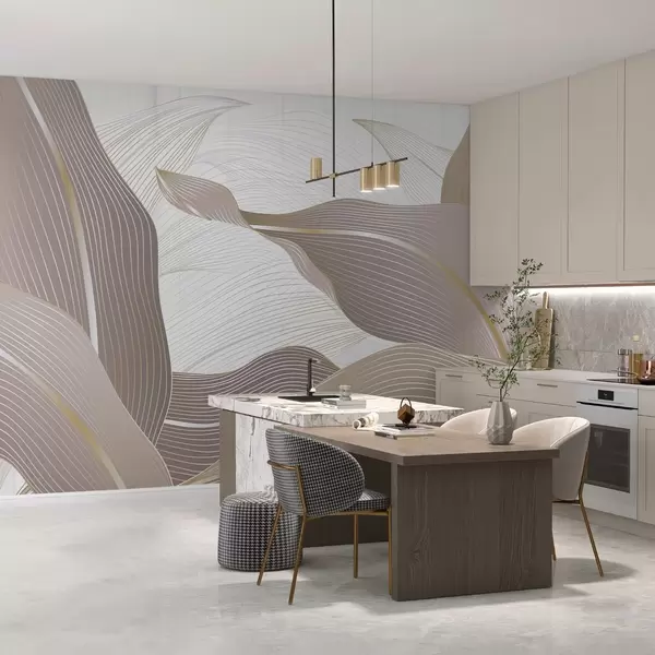 Τοιχογραφίες Αφηρημένο μοτίβο με κυματιστά φύλλα σε απαλές ροζ και μπεζ αποχρώσεις σε ανοιχτό φόντο με λεπτές λεπτομέρειες υφής Nr. w08686v1