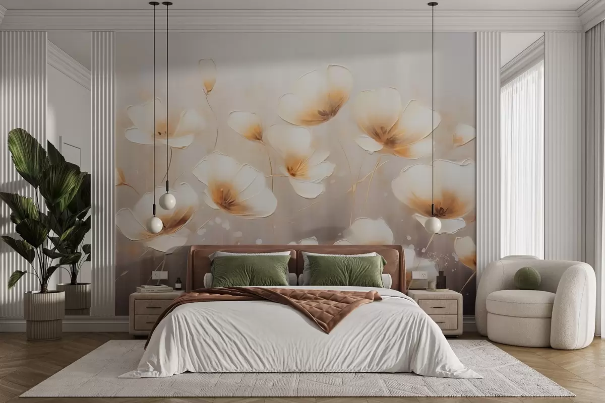 Τοιχογραφίες Κομψά λουλούδια με λεπτά, απαλά πέταλα σε ζεστές αποχρώσεις Nr. w08746