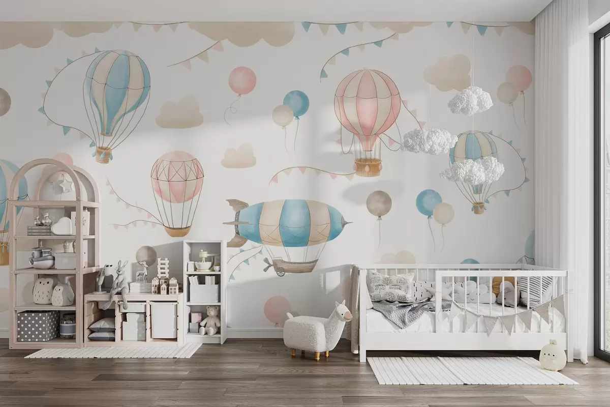 Τοιχογραφίες Παιδικό σχέδιο ακουαρέλας με μπαλόνια Nr. w08765