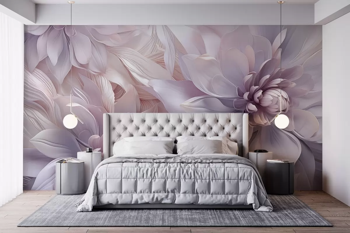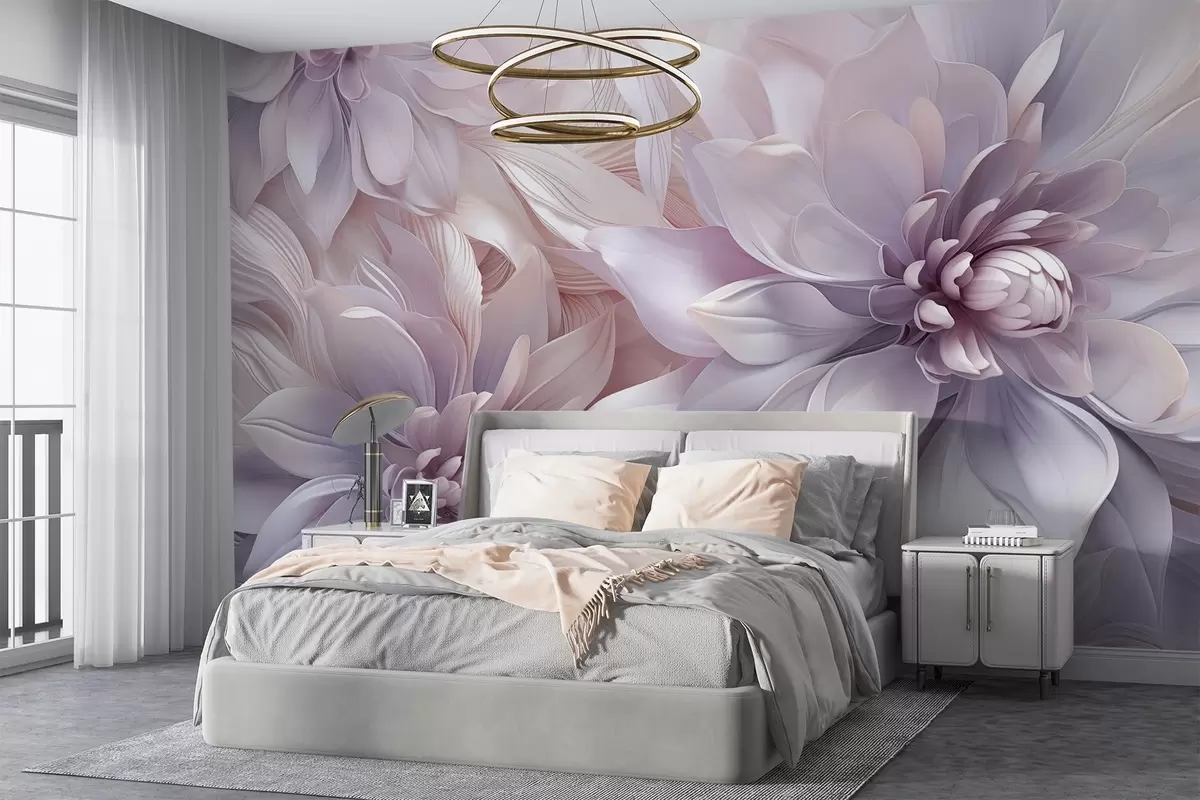 Τοιχογραφίες Απαλά, πολυεπίπεδα λουλούδια σε αποχρώσεις του απαλού ροζ, της λεβάντας και του λευκού με λεπτεπίλεπτα πέταλα και περίπλοκες λεπτομέρειες Nr. w08783