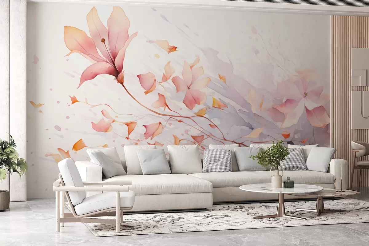 Τοιχογραφίες Ένα λουλούδι με πέταλα που πέφτουν και φτερουγίζουν στον άνεμο σε στυλ ακουαρέλας Nr. w08821