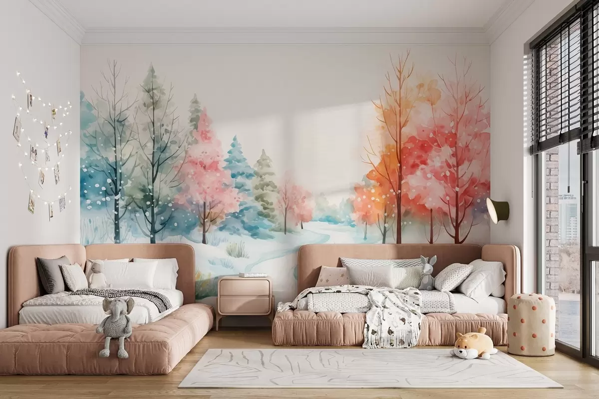 Τοιχογραφίες Ένα ζωντανό χειμωνιάτικο δάσος σε στυλ ακουαρέλας Nr. w08856