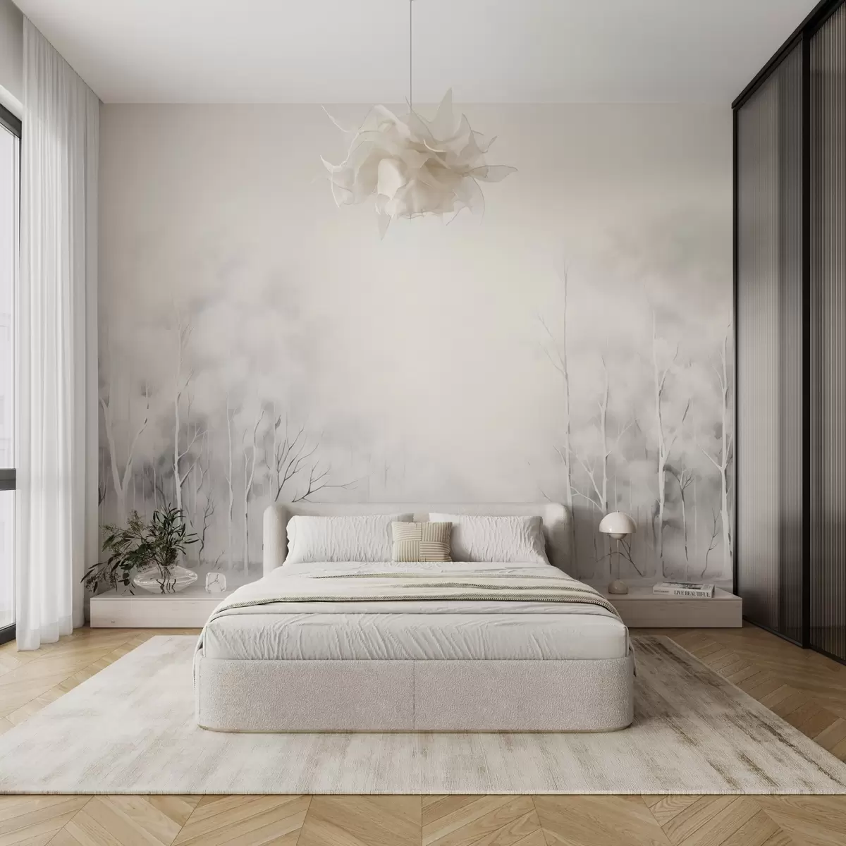 Τοιχογραφίες Δέντρα στην ομίχλη σε στυλ ακουαρέλας σε ζεστό φόντο Nr. w08875