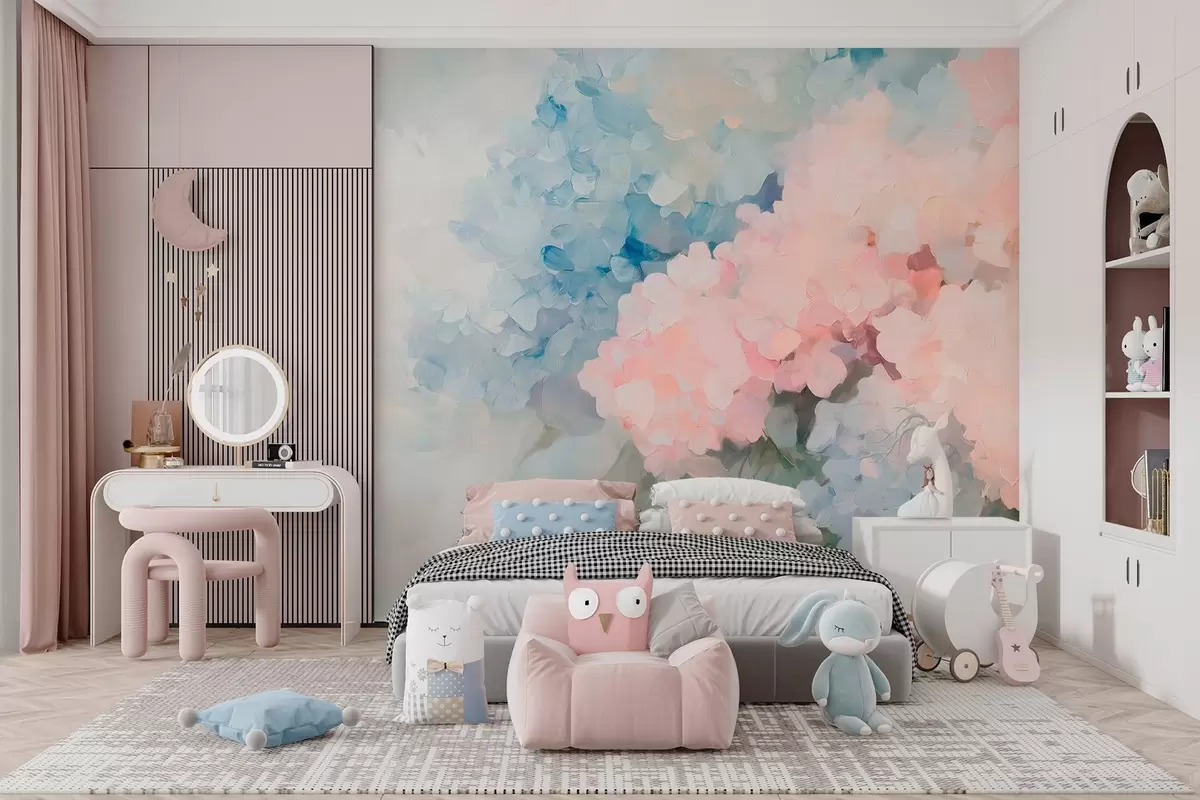 Τοιχογραφίες Ντελικάτες ορτανσίες σε ακρυλικό στυλ Nr. w08923