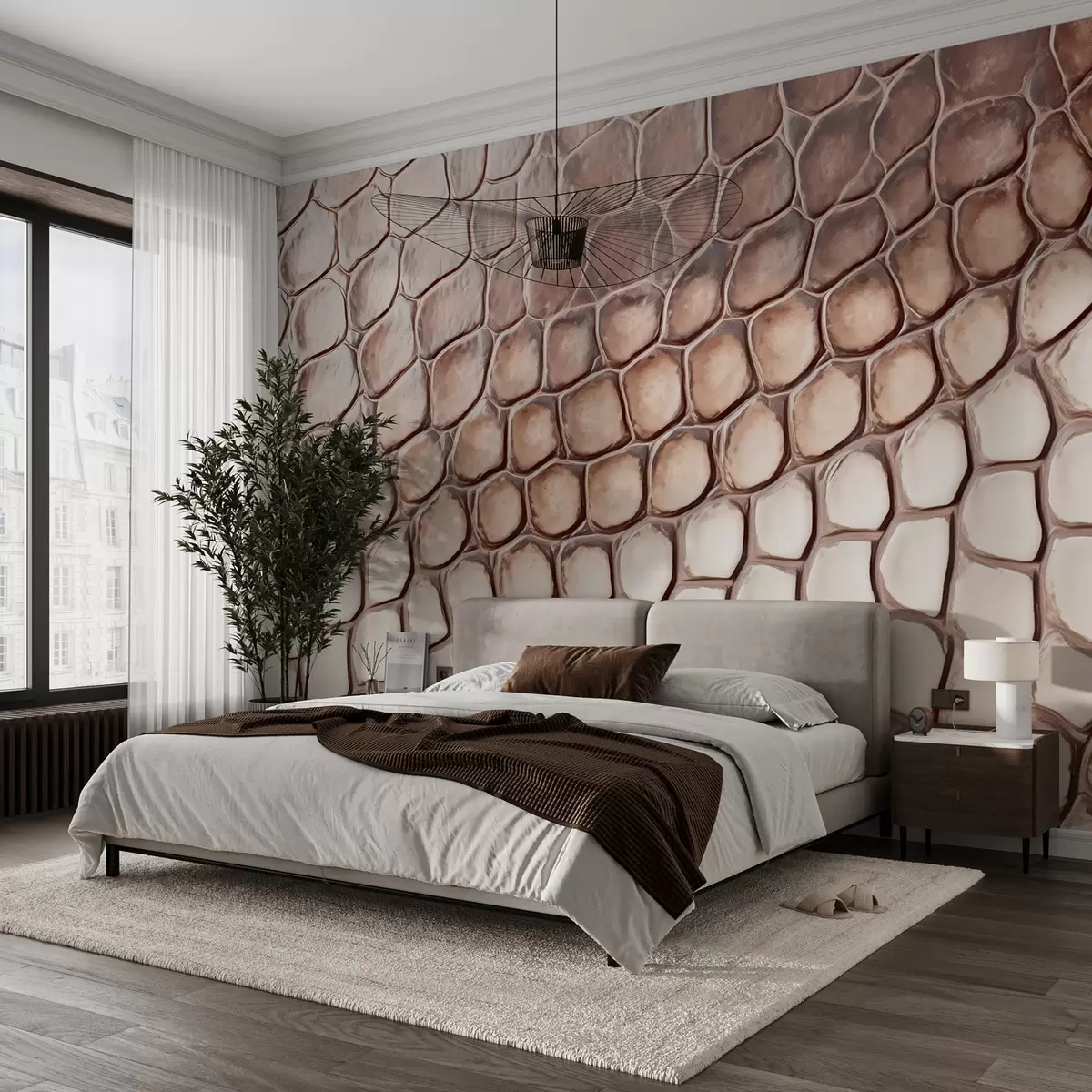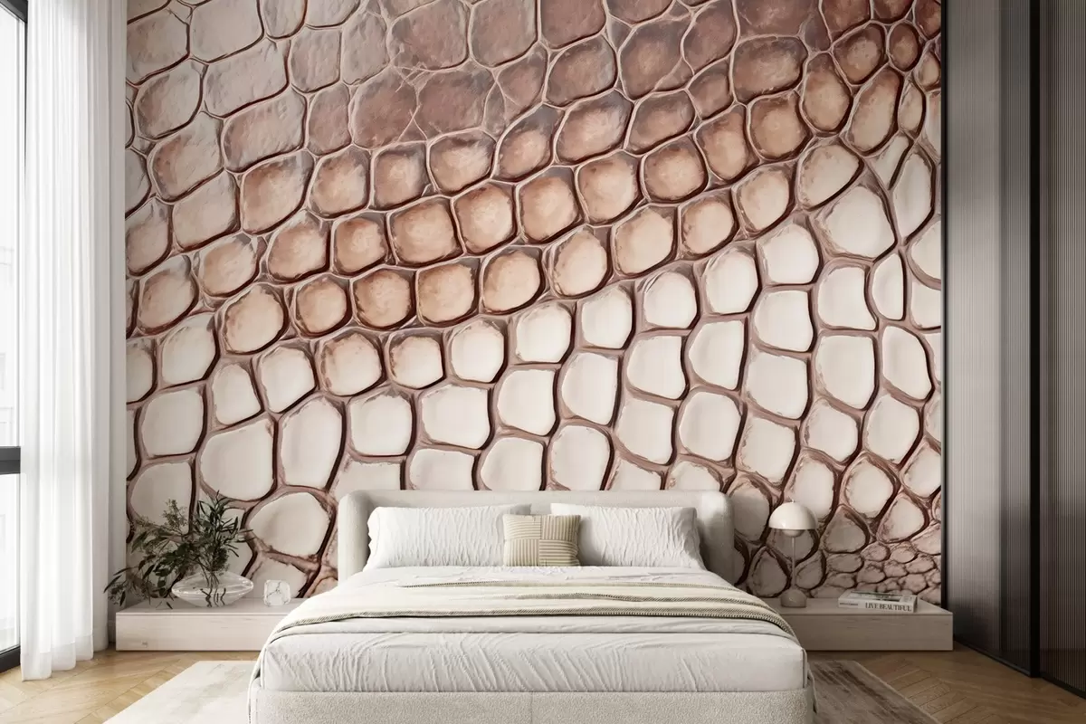 Τοιχογραφίες Λευκό-καφέ δέρμα ερπετού, μοτίβο κλίμακας Nr. w08957