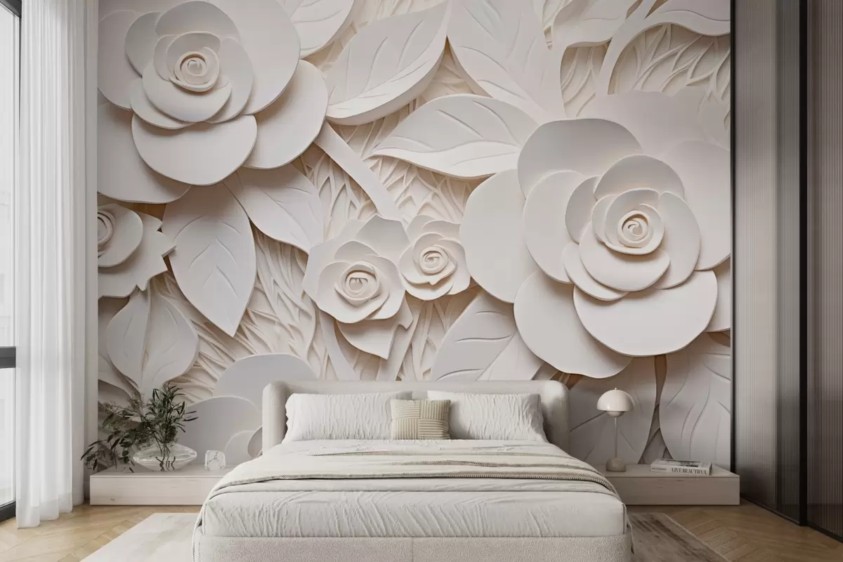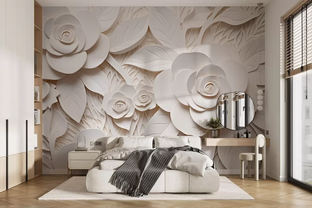 Τοιχογραφίες 3D λευκά ογκομετρικά τριαντάφυλλα Nr. w08963