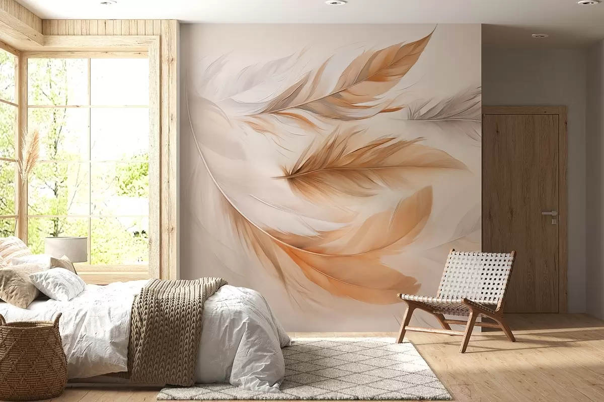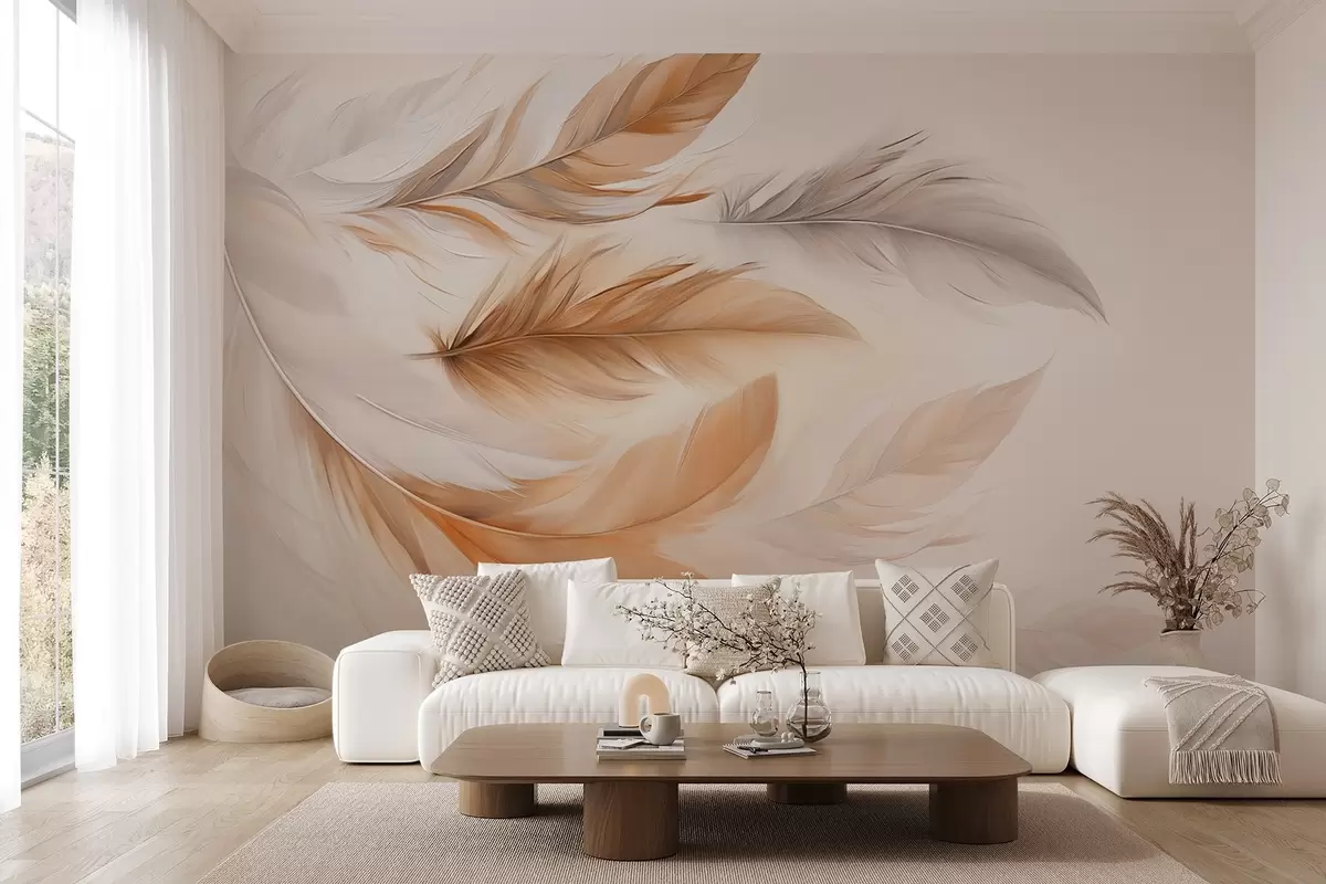 Τοιχογραφίες Αιωρούμενα αέρινα καφέ-γκρι φτερά Nr. w08968