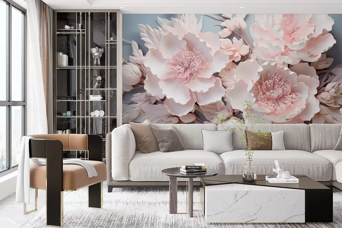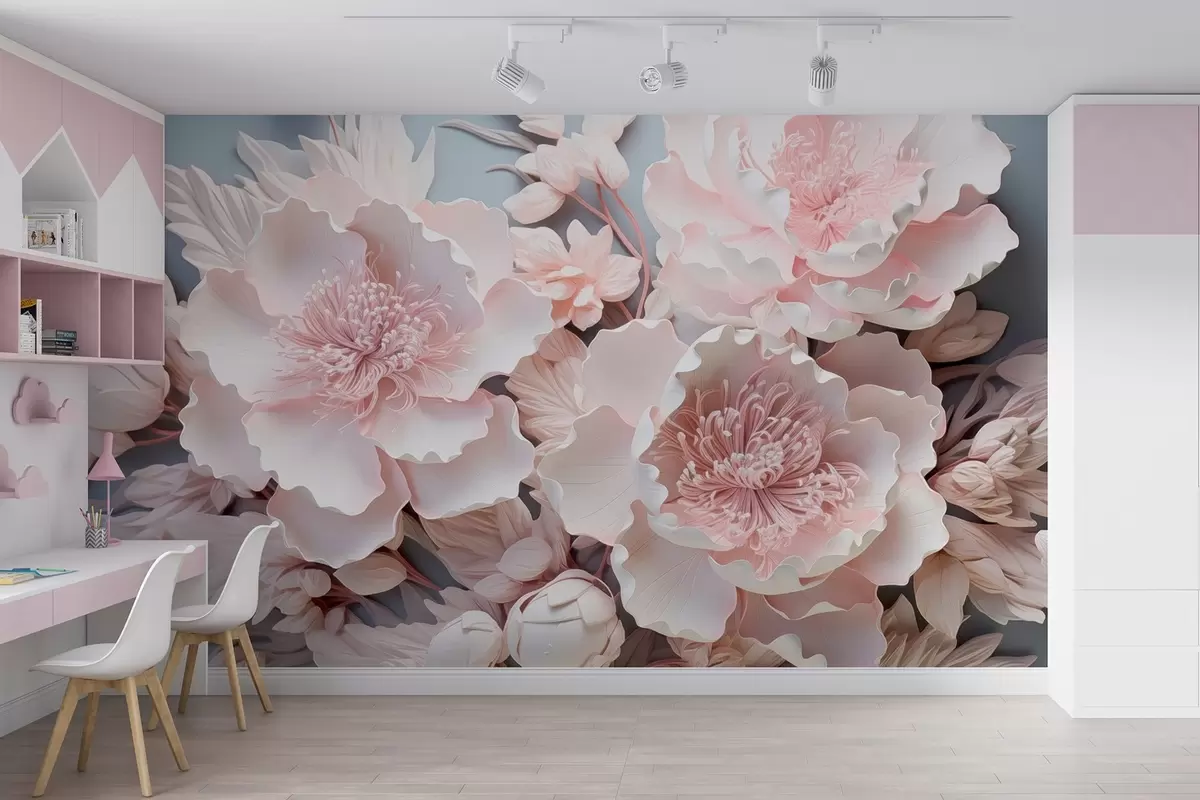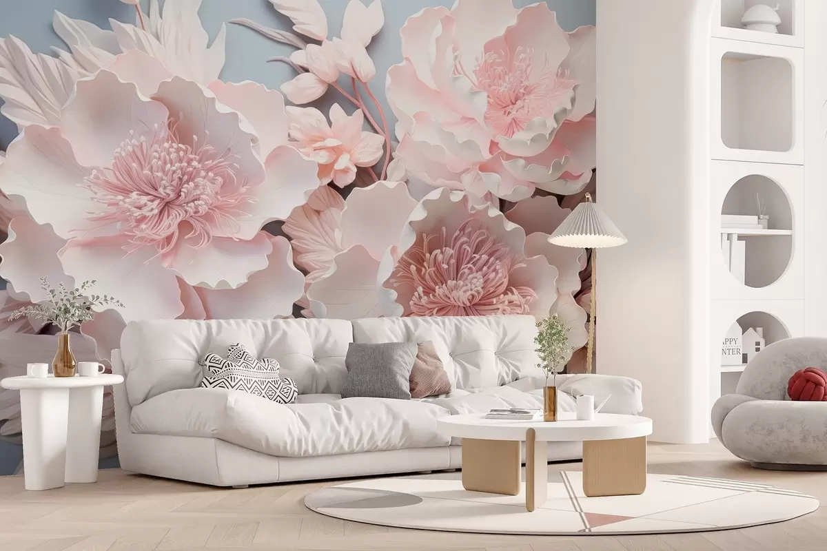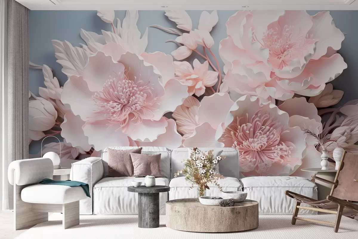 Τοιχογραφίες Ογκώδη ροζ λουλούδια σε ντελικάτες αποχρώσεις Nr. w08988
