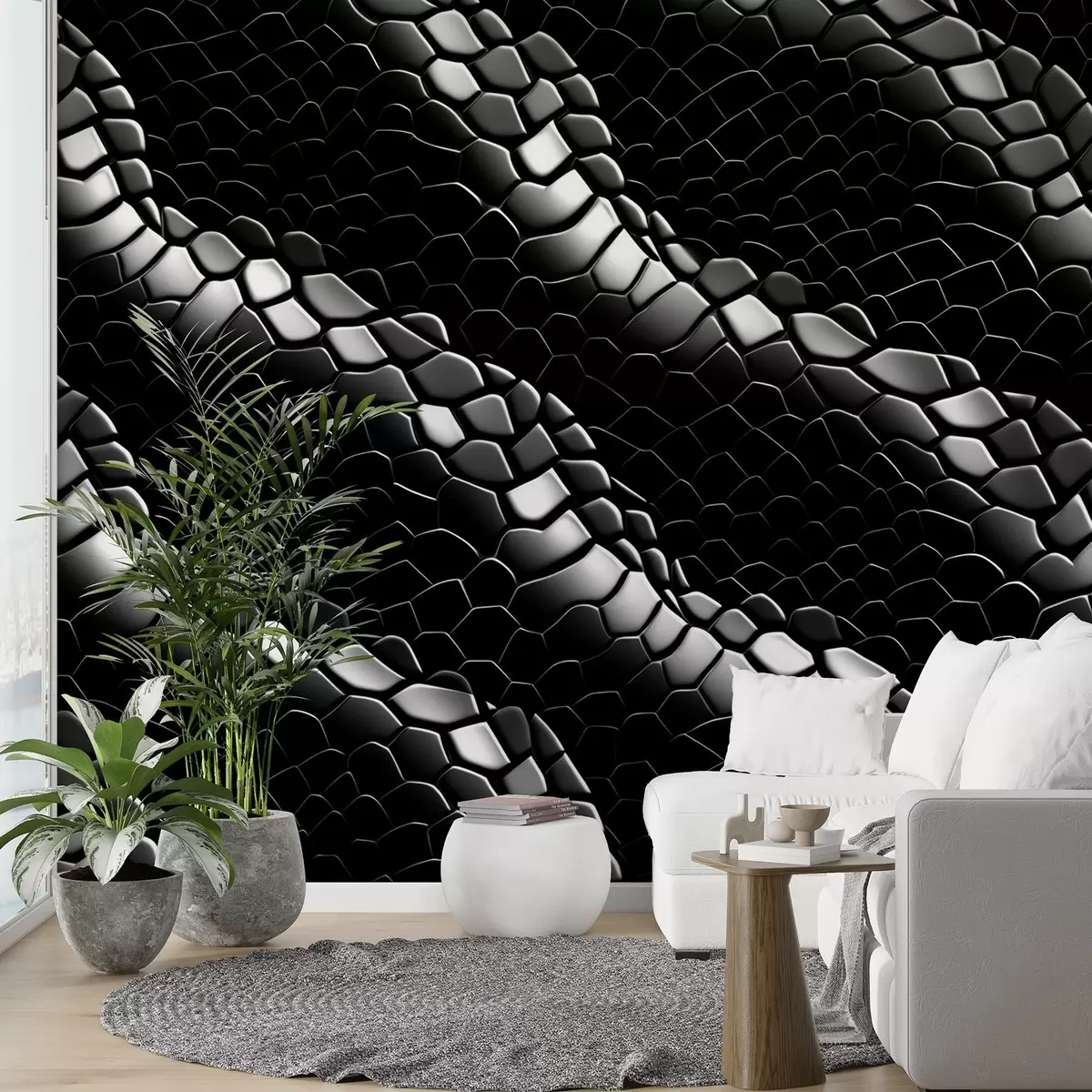 Τοιχογραφίες Μαύρα και λευκά κύματα στην υφή του δέρματος φιδιού Nr. w08995