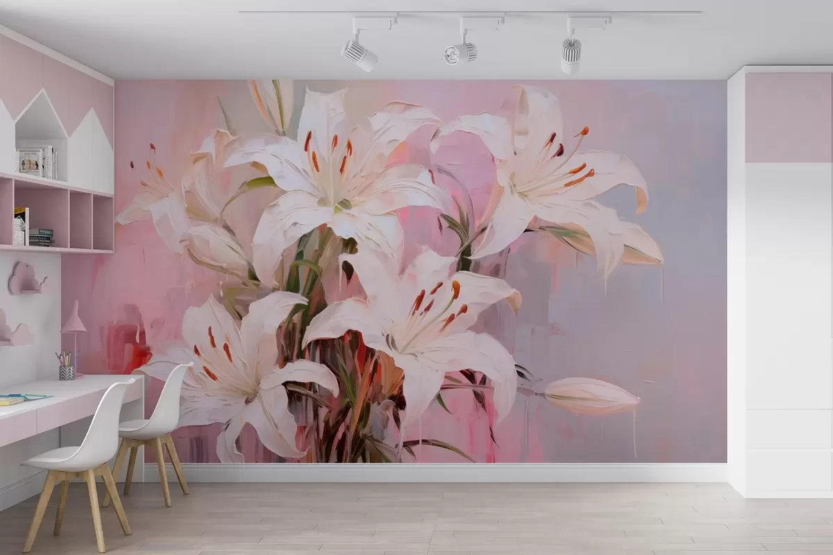 Τοιχογραφίες Κρίνοι σε ζωηρά χρώματα σε στυλ ζωγραφικής Nr. w08996