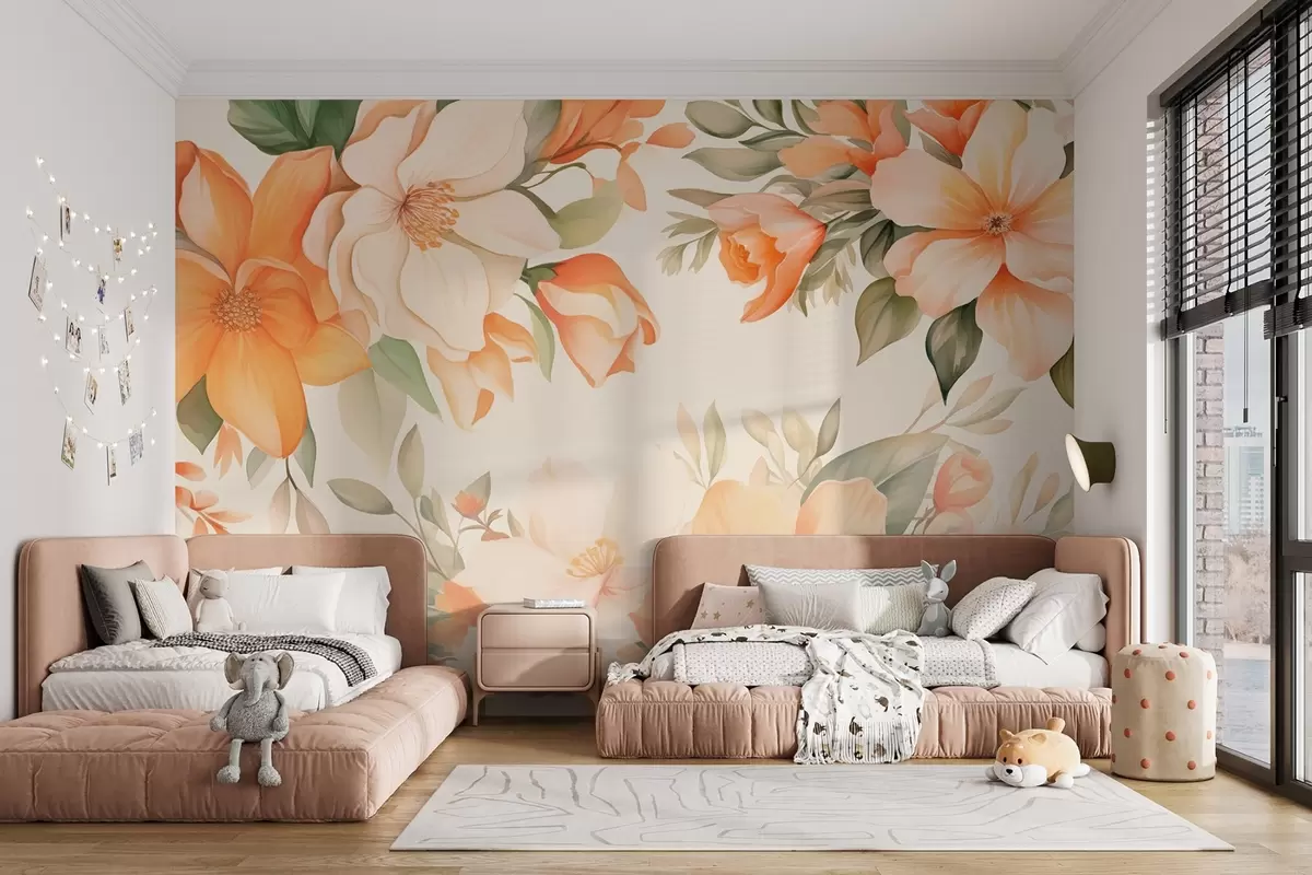 Τοιχογραφίες Μεγάλα πορτοκαλί λουλούδια σε στυλ ακουαρέλας Nr. w09023